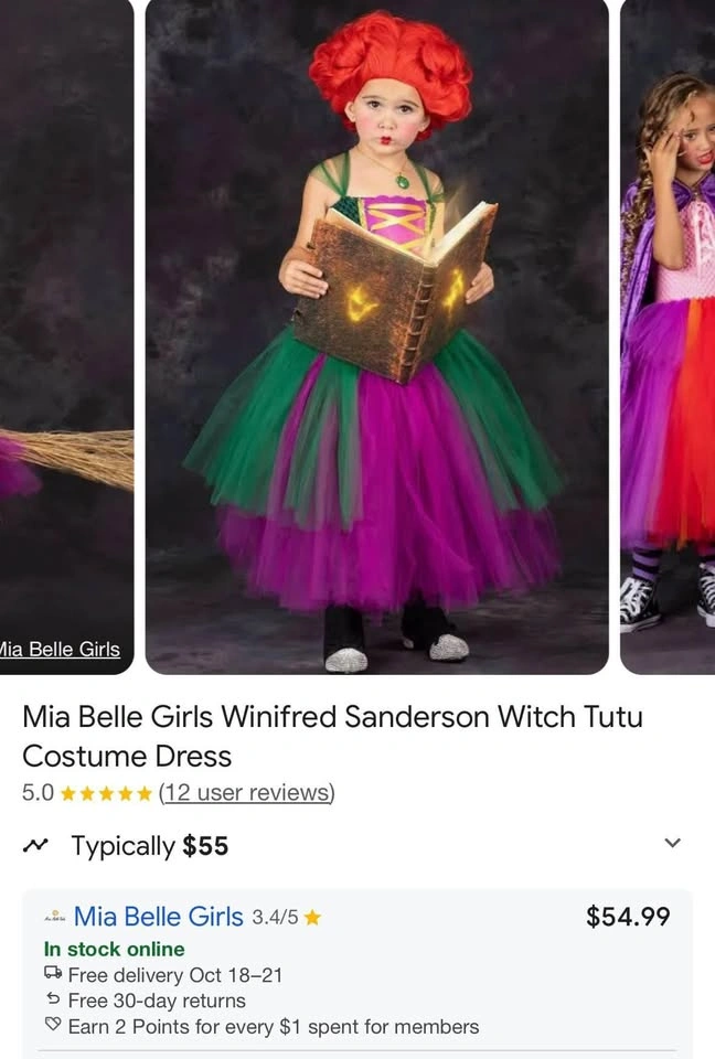 Steal the spotlight in this kids Winifred Sanderson costume! Size 6 Lightweight tulle skirt and stretchy bodice make it easy to wear all night.