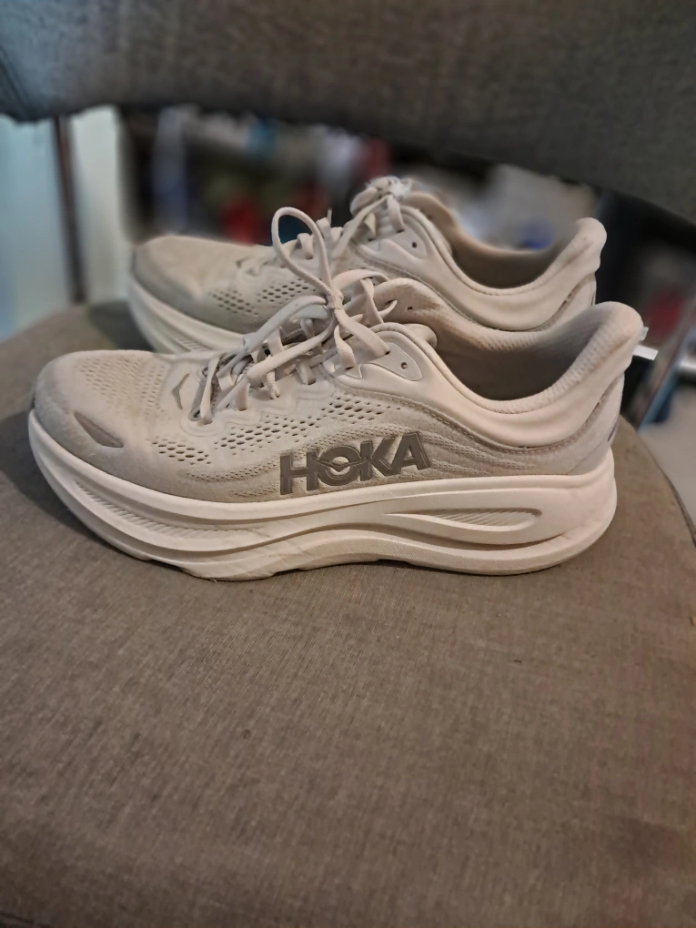 Selling a pair of Hoka running shoes. They show some signs of wear but are still in good condition for running or walking!