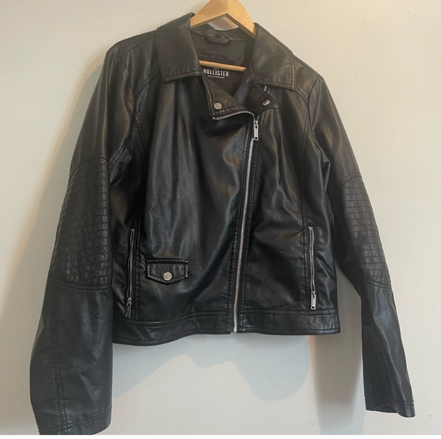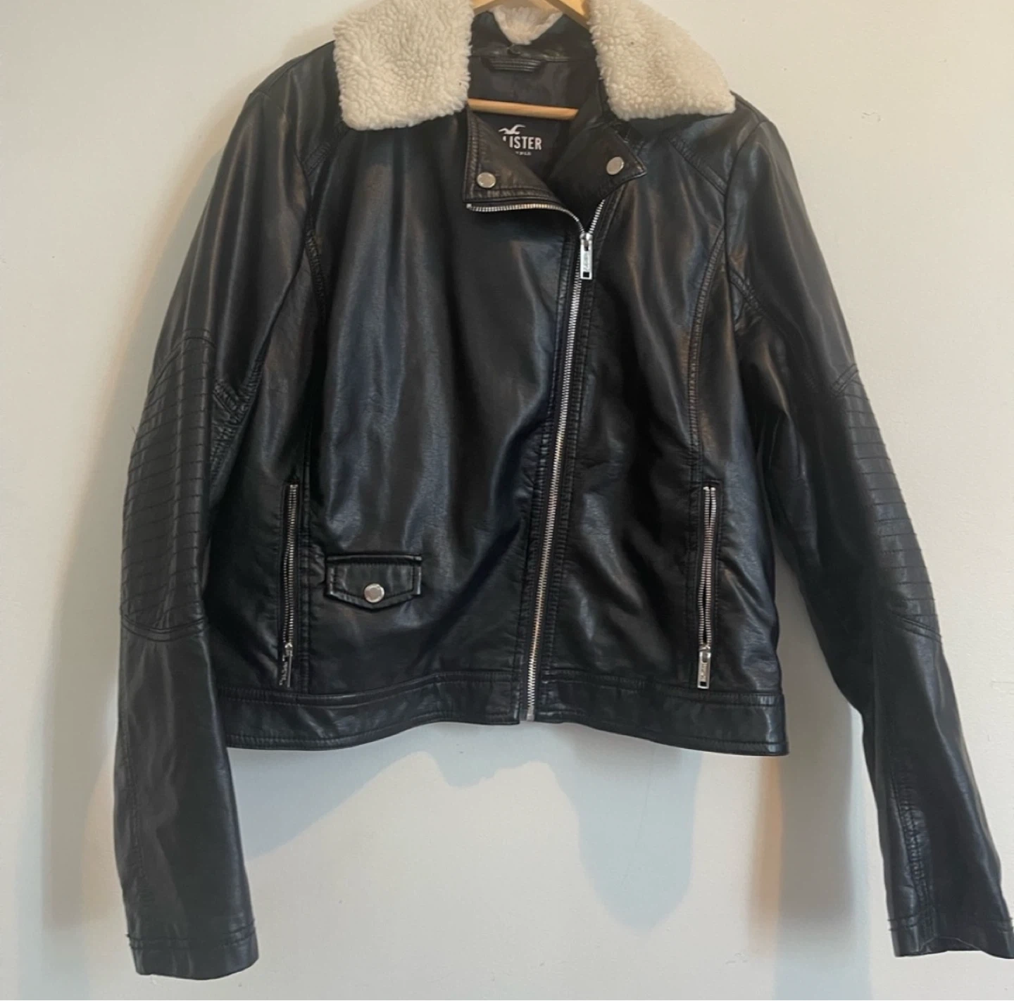 21Selling a stylish black faux leather jacket from Hollister! It's in great condition and features a classic moto design with zipper details. Perfect for adding a bit of edge to any outfit