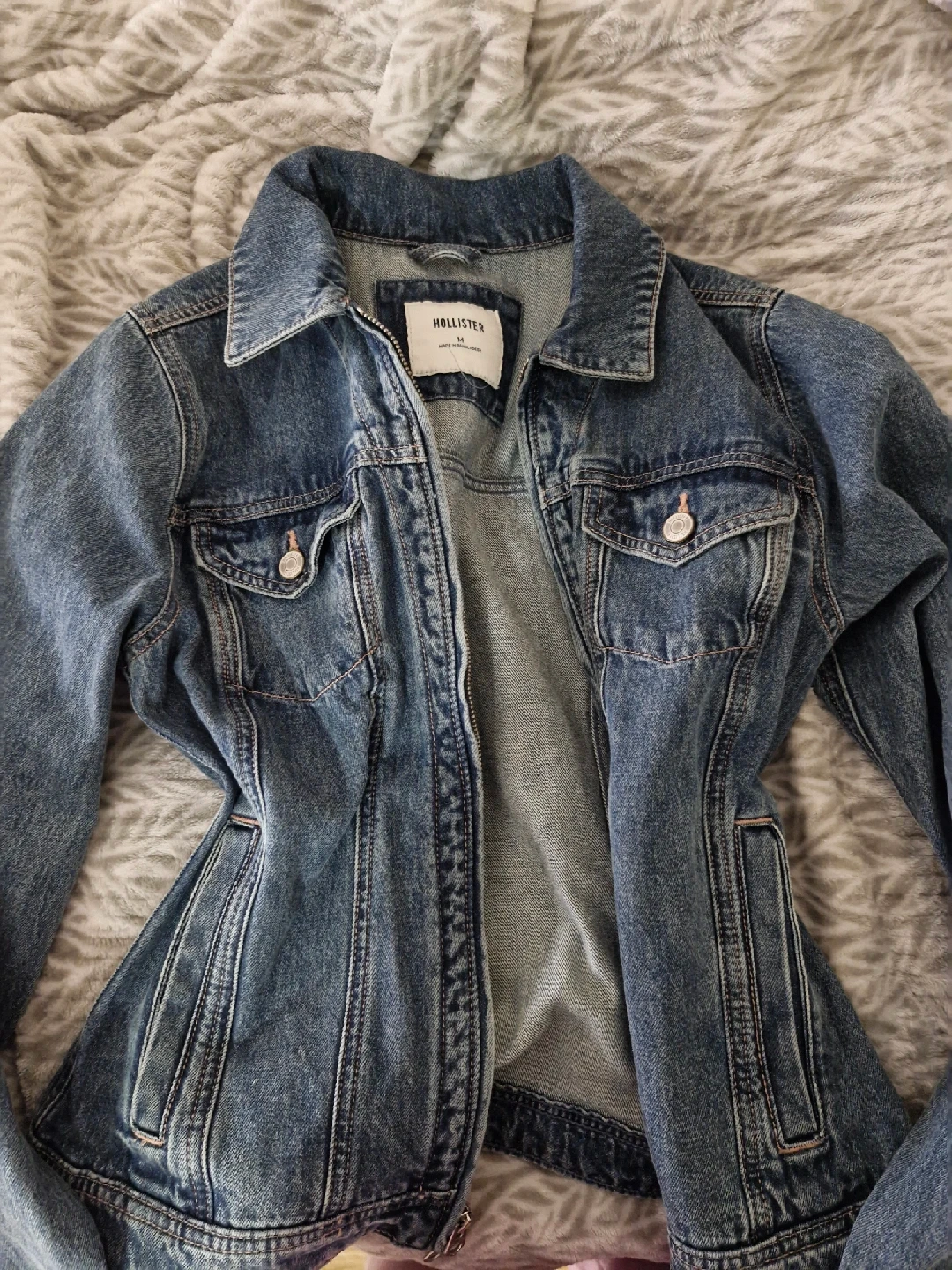 21Selling a Hollister denim jacket in size M. It's in great condition and ready for a new home! The jacket features a classic denim wash and a comfortable fit. Perfect for layering or wearing on its own