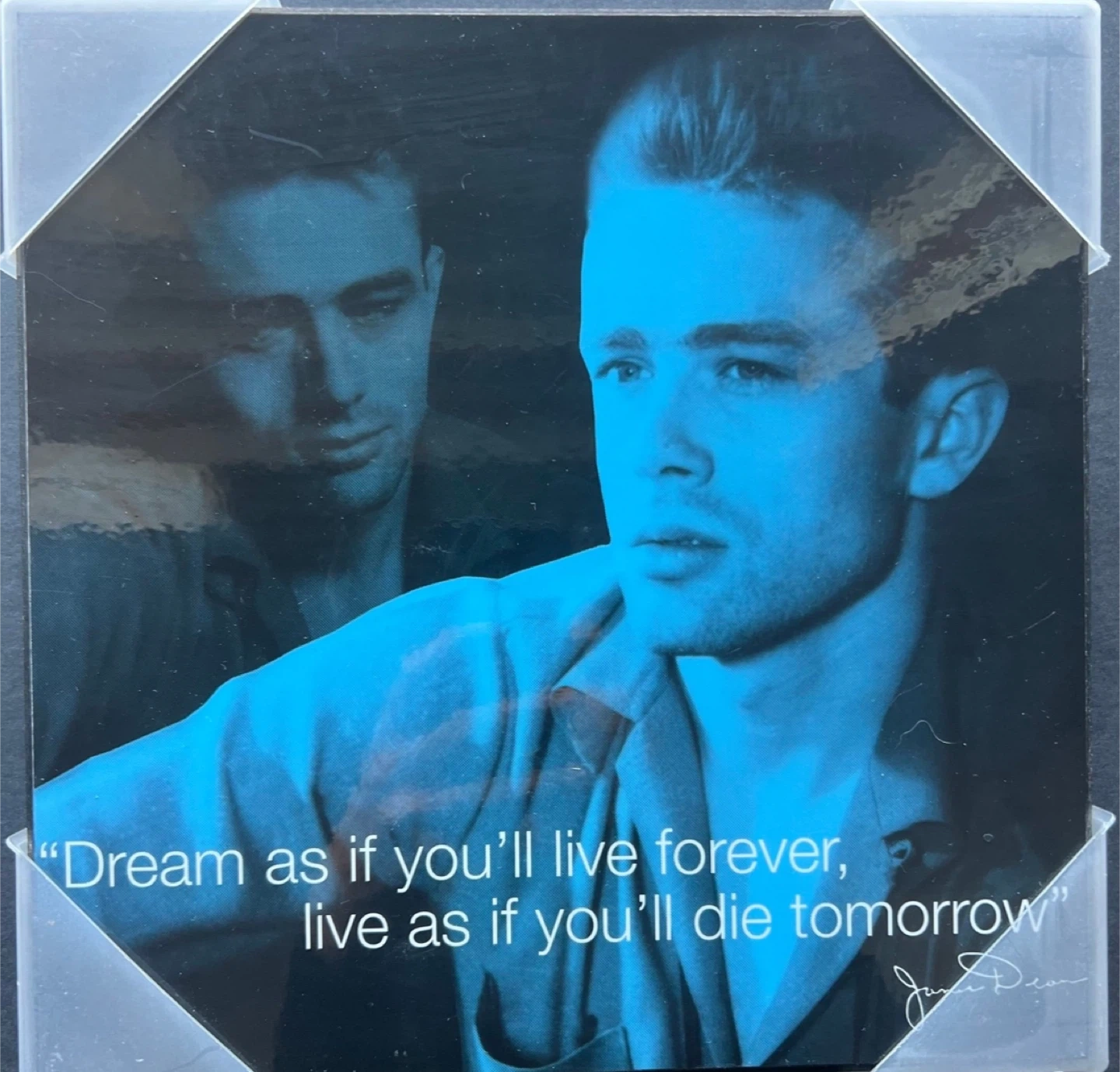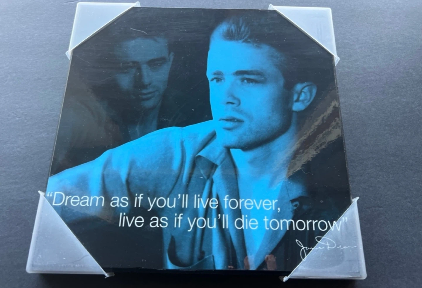 205This @Home Celebrity Quotes featuring James Dean is in great condition! It features a quote from one of the stars. The toned photography in bold colors makes this collection both modern and sophisticated. It measures 10 5/8 in H x 10 5/8 in W x 3/4 in D (26.8 cm x 26.8 cm x 1.9 cm)
