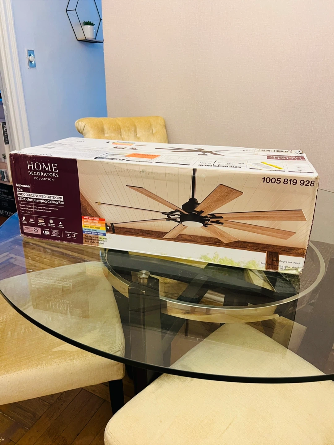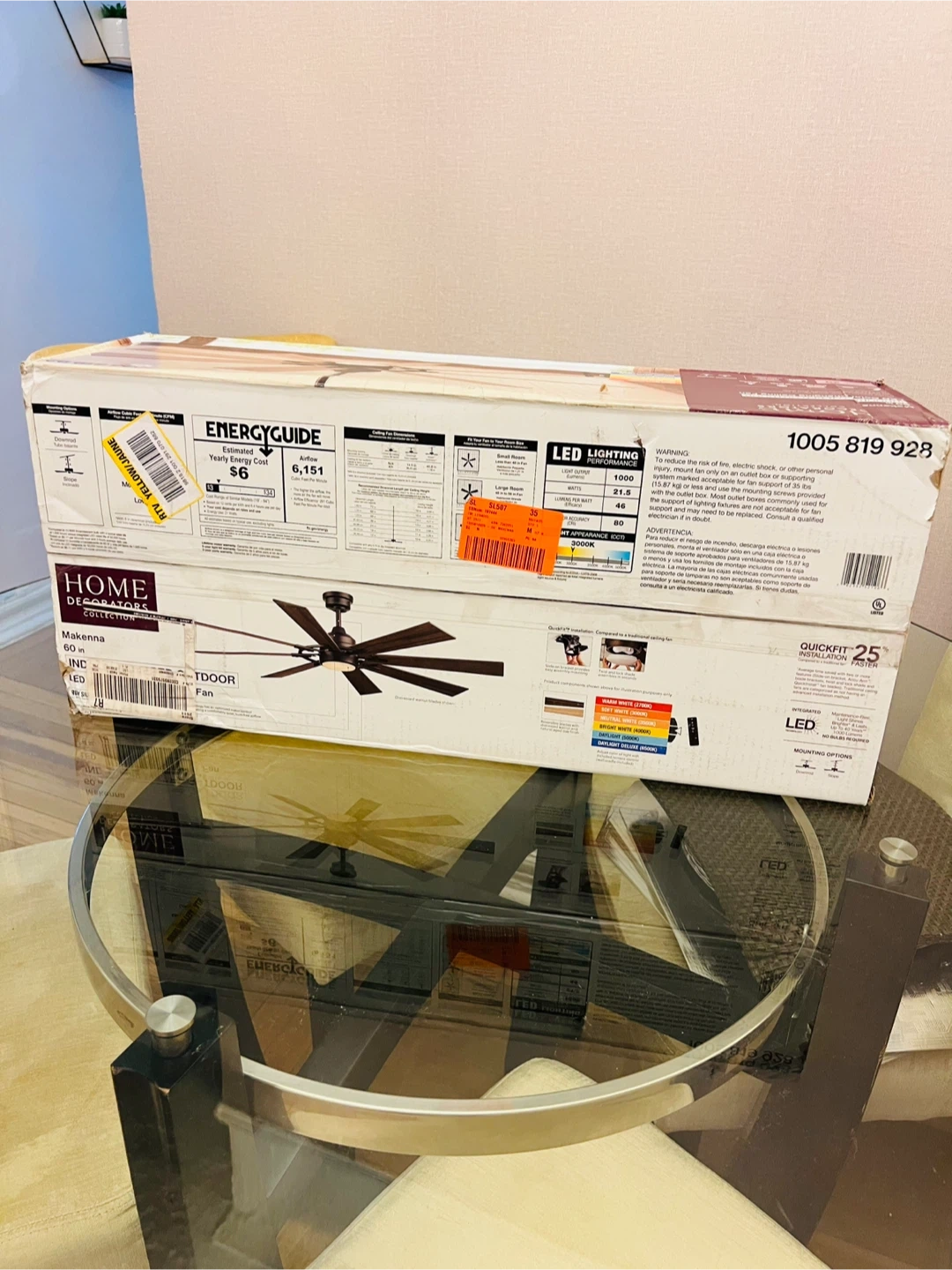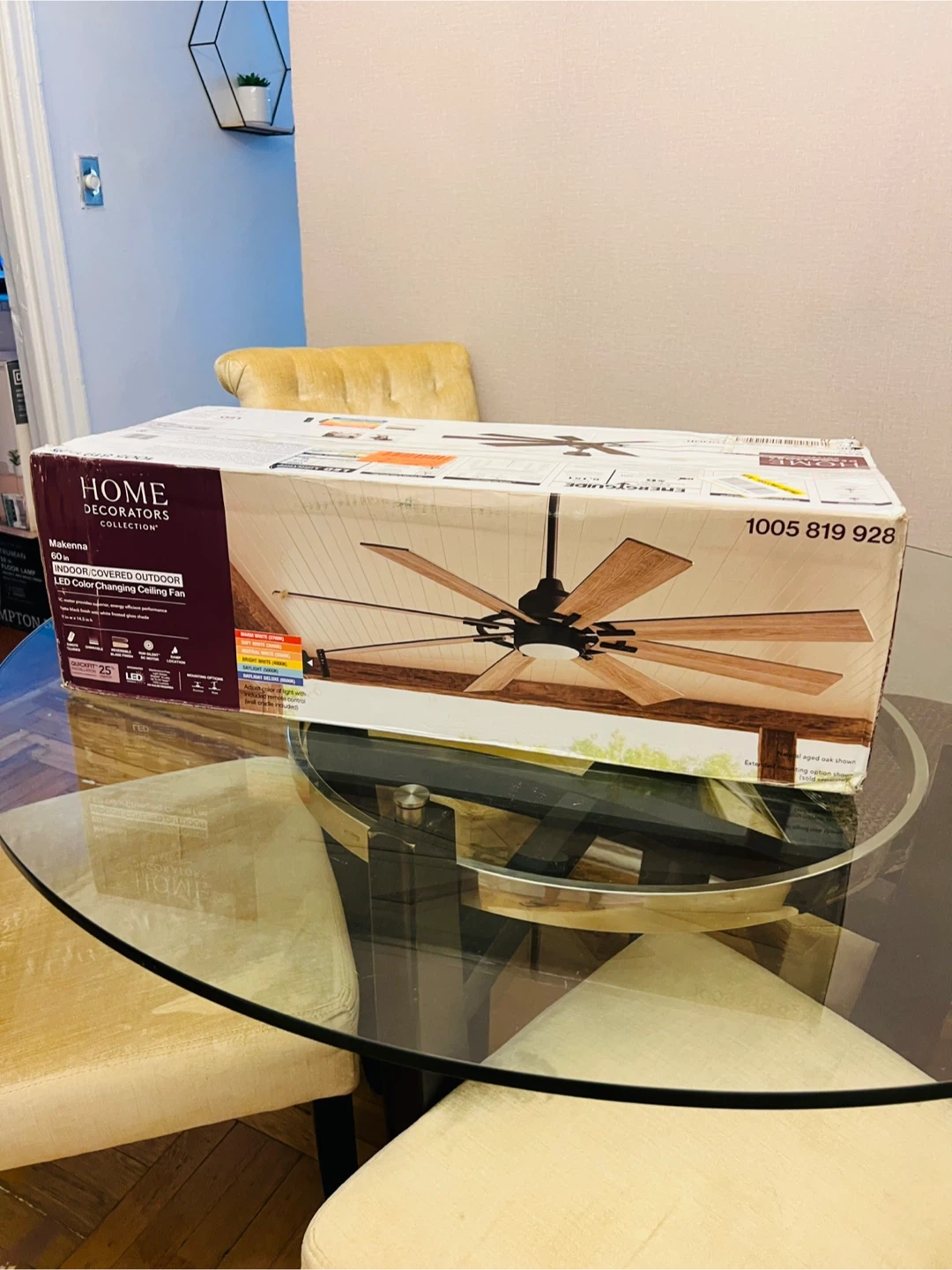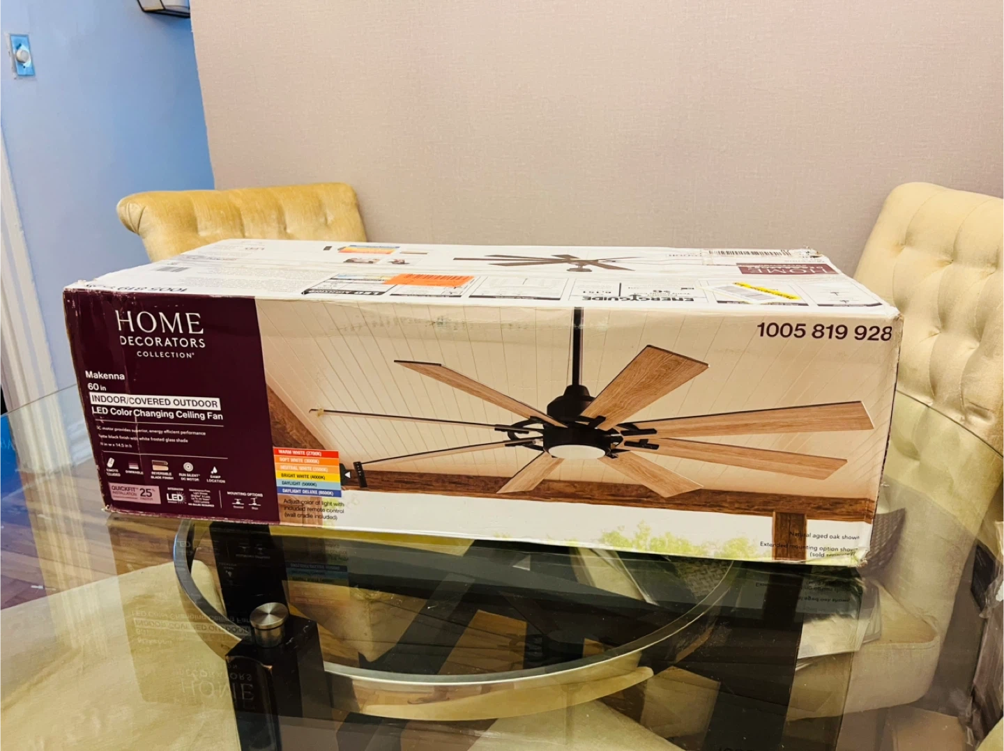 Selling a new Home Decorators Collection Makena 60" Indoor/Covered Outdoor LED Color Changing Ceiling Fan. It's still in the box! Features include: - 60 inch size - Indoor/Covered Outdoor use - LED lighting - Color changing capabilities