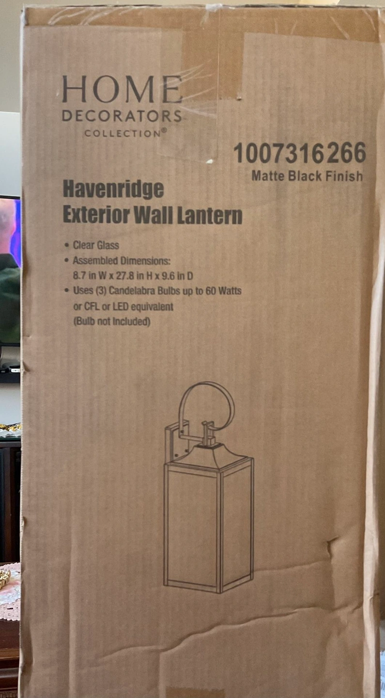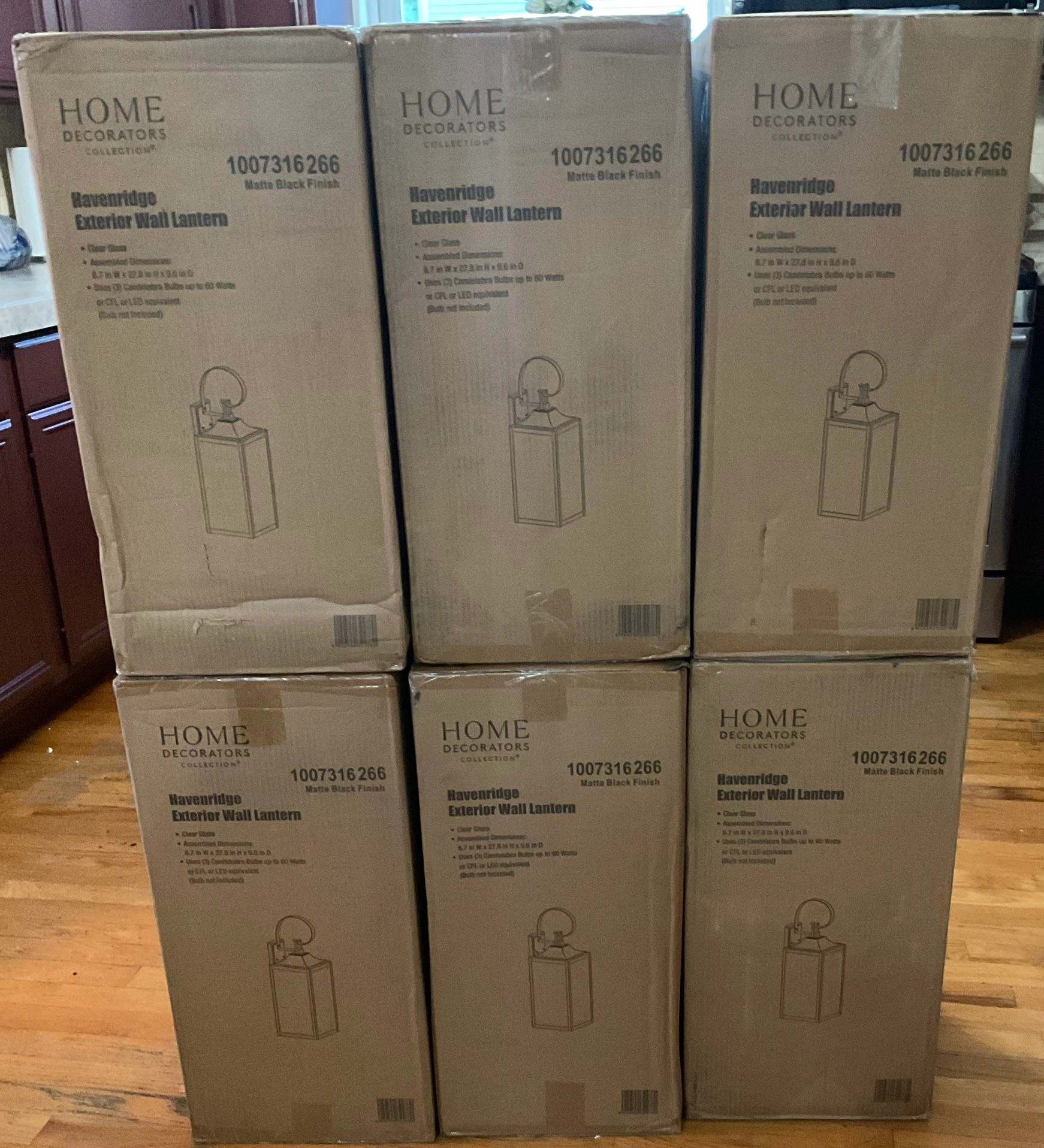 Brand New. (Have 6 Available) Home Decorators Collection Havenridge 27.8 in. 3-Light Matte Black Hardwired Outdoor Wall Light Lantern Sconce with Clear Glass (1-Pack) Feel free to message if you have any questions!