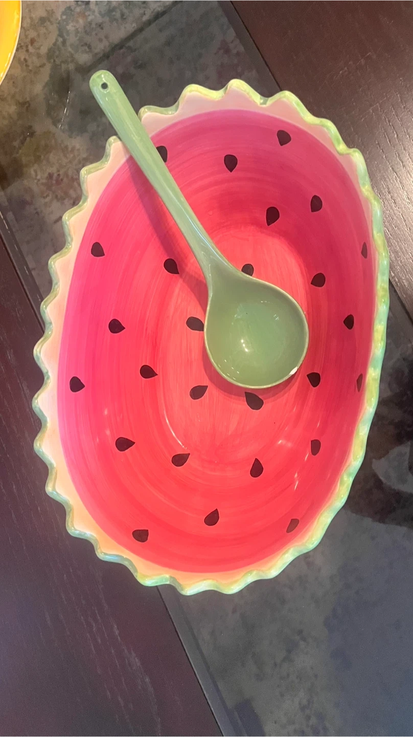 I'm selling home goods. $10-Ceramic Watermelon serving bowl -CASH & CARRY ONLY!! This ceramic watermelon serving bowl has a slight imperfection(on ladle). * It is a folk art-style bowl with a wavy rim, painted to resemble a watermelon slice * The bowl is hand-painted with lime green, raspberry red, and black * Some versions of this bowl are from the mid-century period $10-Vintage Italian Ceramica CASH & CARRY ONLY!! Castellania ceramic oval platter with a bright yellow floral design. SIZE:18-1/2 L x13-1/2W The 1970’s design often features bright yellow flowers and green leaves on a white background, consistent with the style of pieces from makers like Ceramica Castellania and Varm Ceramica, both based in Italy. $10-Fix Valley Brand-Aluminum ice cube trays set of 2 CASH & CARRY ONLY!! The original is back! This classic, hard to find aluminum ice cube tray works without the struggle of modern plastic versions. Simply raise the handle and 18 cubes tumble right out. Metal ice trays measure 11" long x 4" wide x 1-3/4 high $10-NEW Black 7 (6 )Piece Corkscrew set -Target Brand INCLUDES Lever Corkscrew Foil Cutter Wine Collar(missing piece) Extra Screw Wine Pourer Wine Stopper and Case Never used-not sure why a pc is missing 🤔 $35-NAIL SALON GOODS CASH & CARRY ONLY!! An array of colors and really cute nail designs along with some tools and brushes, the UV lamp and the nail pedicure set have been used and in good condition!! Press on nails too!! Majority of the polishes are brand new and also the tools(will need to sterilize) Would like to sell as a full package so if you want to do your nails at home, you can. $10-Scrubbing Bubbles Fresh Brush Starter Kit & Caddy It is a toilet cleaning system that uses disposable pads. Including 2 boxes of refills (8 in each) * The kit includes a storage caddy, a handle, four flushable refills for everyday cleaning, and two heavy-duty refills for extra scrubbing power. * The system features two types of pads to address different cleaning needs. * The flushable pads are biodegradable and septic safe. * The handle is designed to reach under the toilet rim.