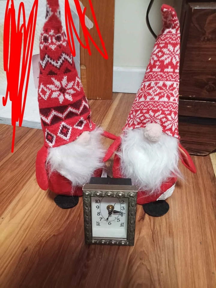 60Add some charm to your home or get ready for the holidays! Includes: Battery-powered clock (works on desk or can be wall-mounted, new battery installed) 2 Christmas decorations (good condition) Perfect for desks, shelves, walls, or holiday decorating.