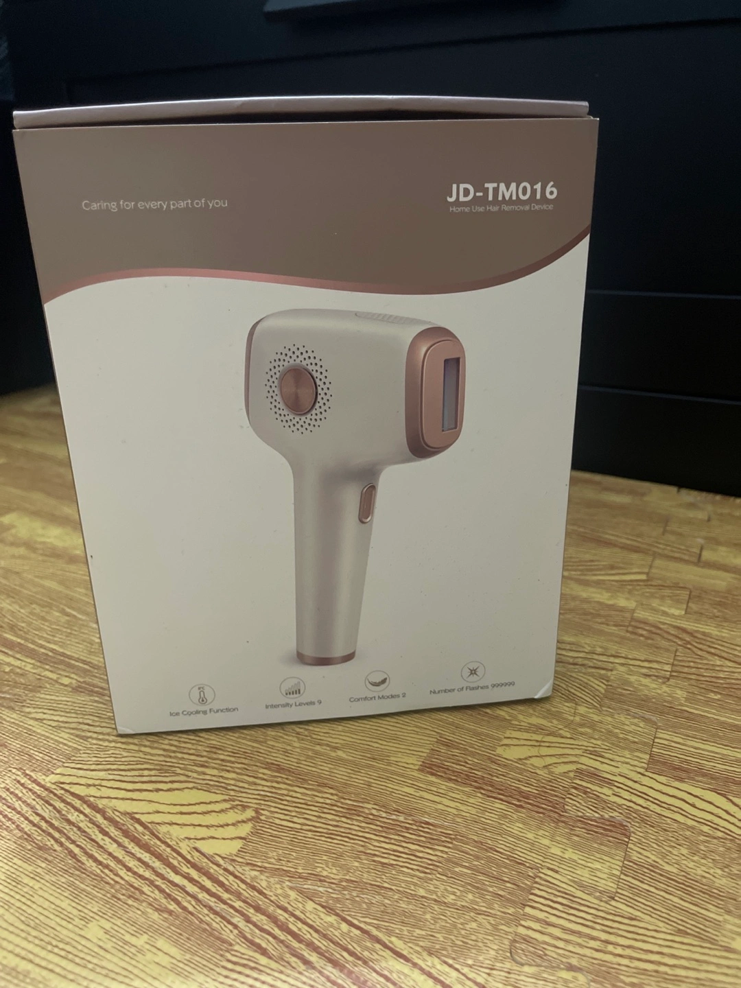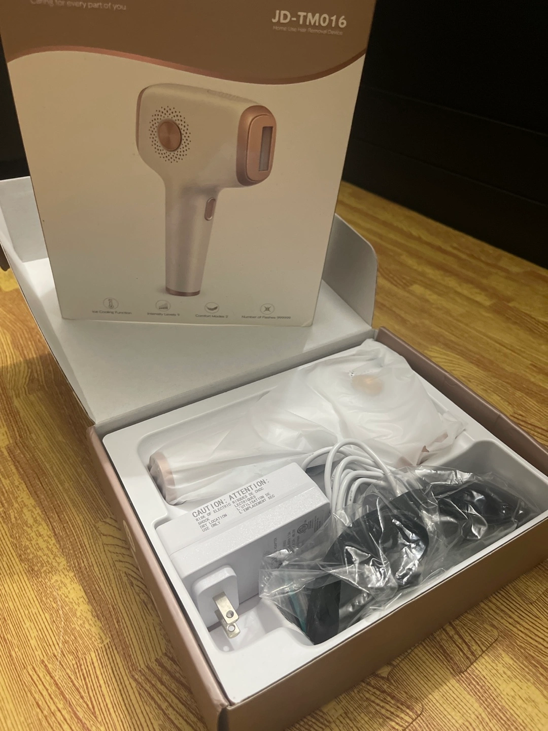 Boxed device for hair removal. It comes with multiple features. Included is a power adaptor. This would be perfect for a relaxing spa night.