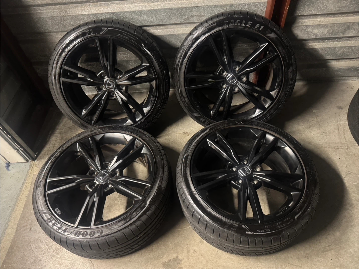 10Selling a set of Honda black wheels paired with Goodyear Eagle F1 tires. They are in good condition and ready to be mounted on your car