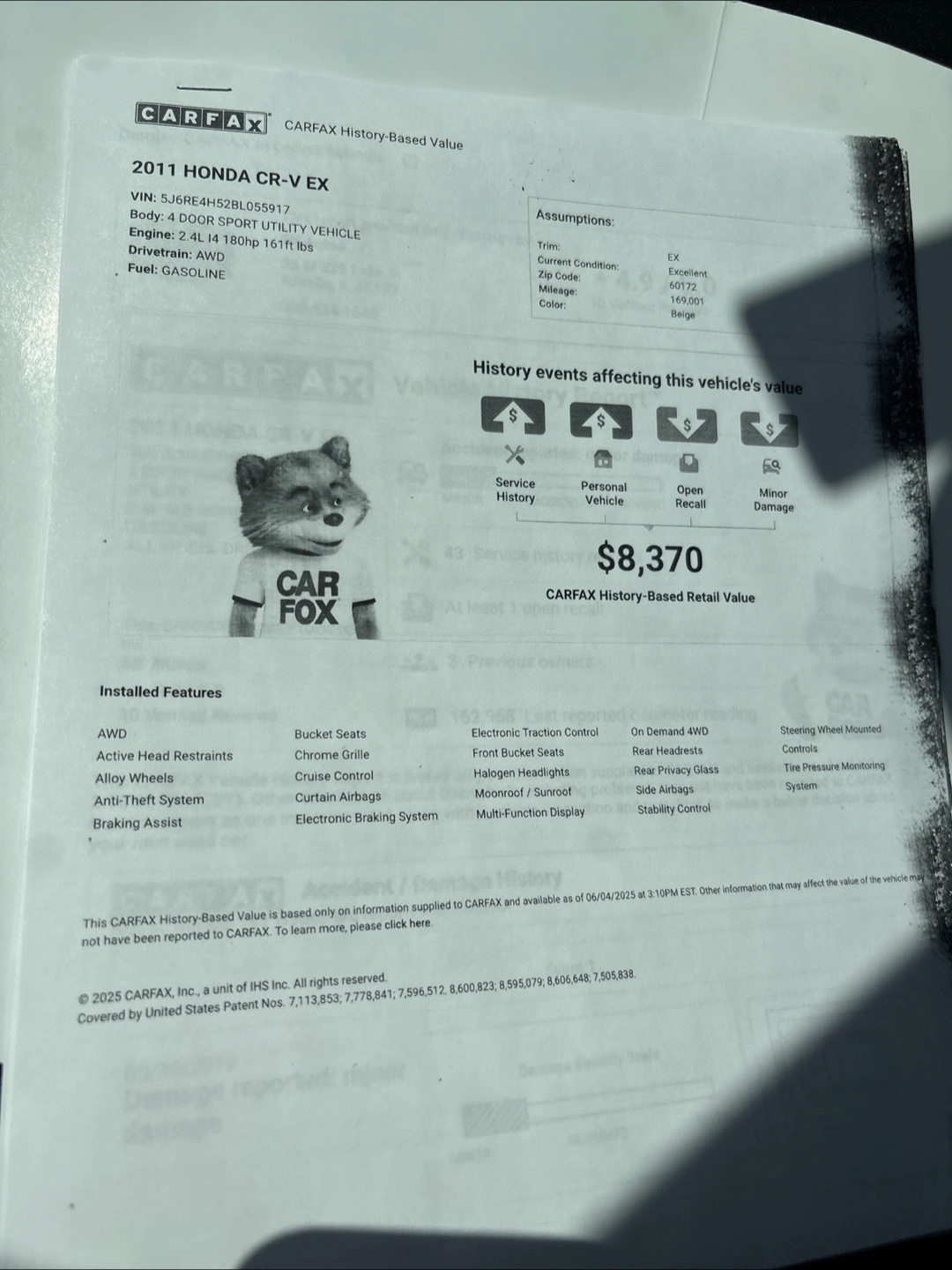 Selling a well-maintained Honda CR-V. It's a great SUV for everyday use and adventures. Plenty of space in the back for cargo or passengers. Feel free to reach out with any questions! 11 169k