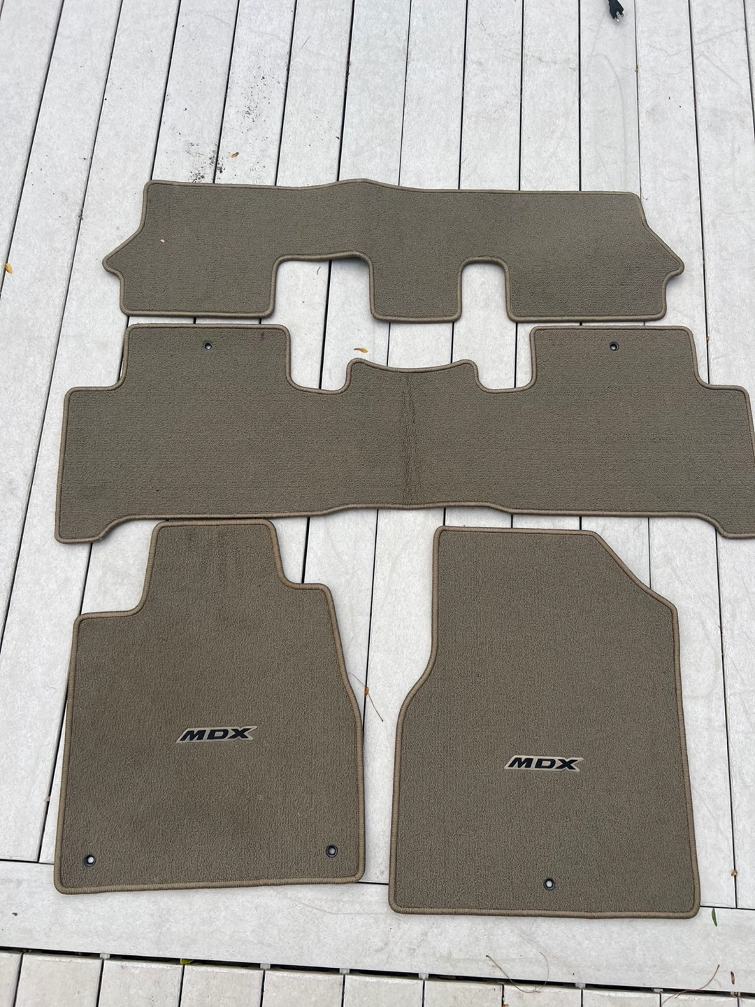 67Selling a set of Honda MDX floor mats. These are beige and in good condition. They have the MDX logo on the front mats.