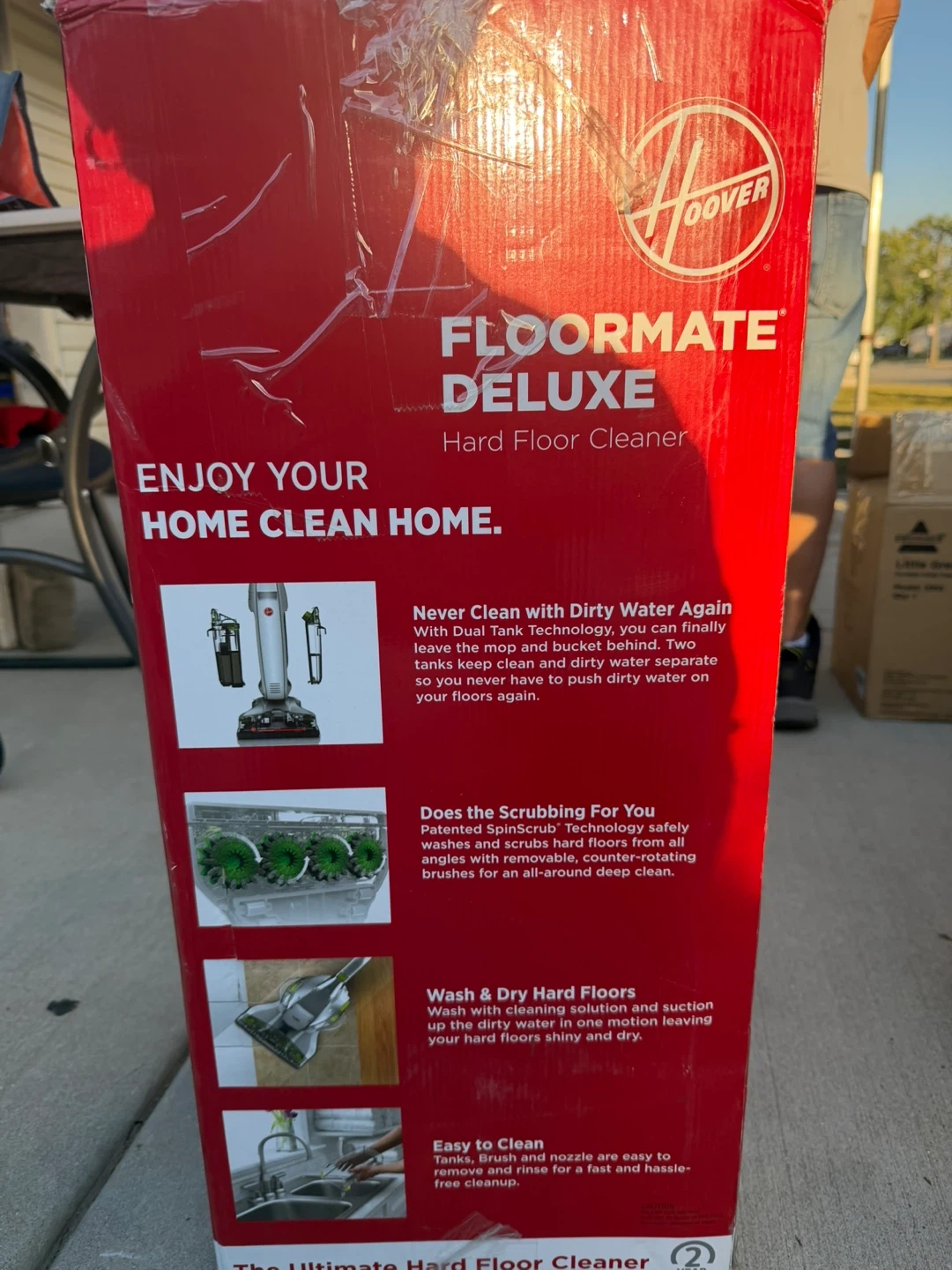 65Enjoy your home clean home with this Hoover Floormate Deluxe Hard Floor Cleaner! It features dual tank technology, so you can finally leave the mop and bucket behind. It also does the scrubbing for you with patented SpinScrub technology and washes and dries hard floors, leaving solution and suction for a one-motion cleaning to leave your hard floors shiny and dry