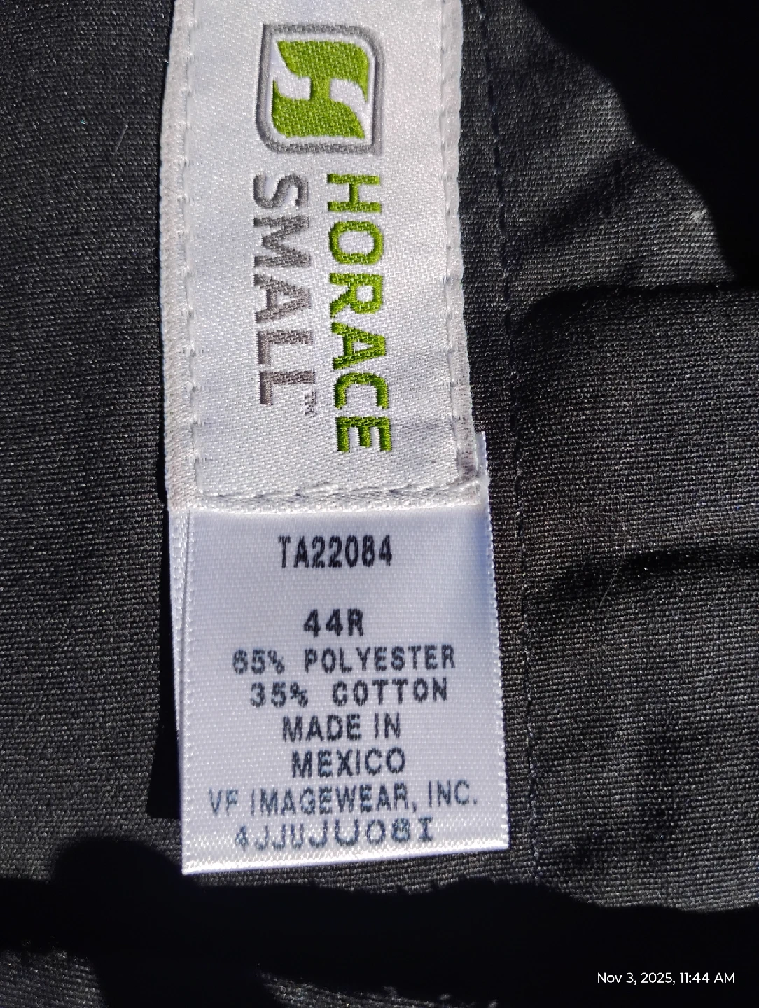 19Selling a pair of Horace Small black pants in size 44R They are made of 65% polyester and 35% cotton seven pairs