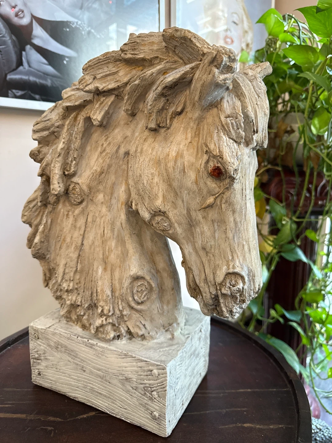 Selling a decorative horse head sculpture. It's a unique piece that would look great in any home.