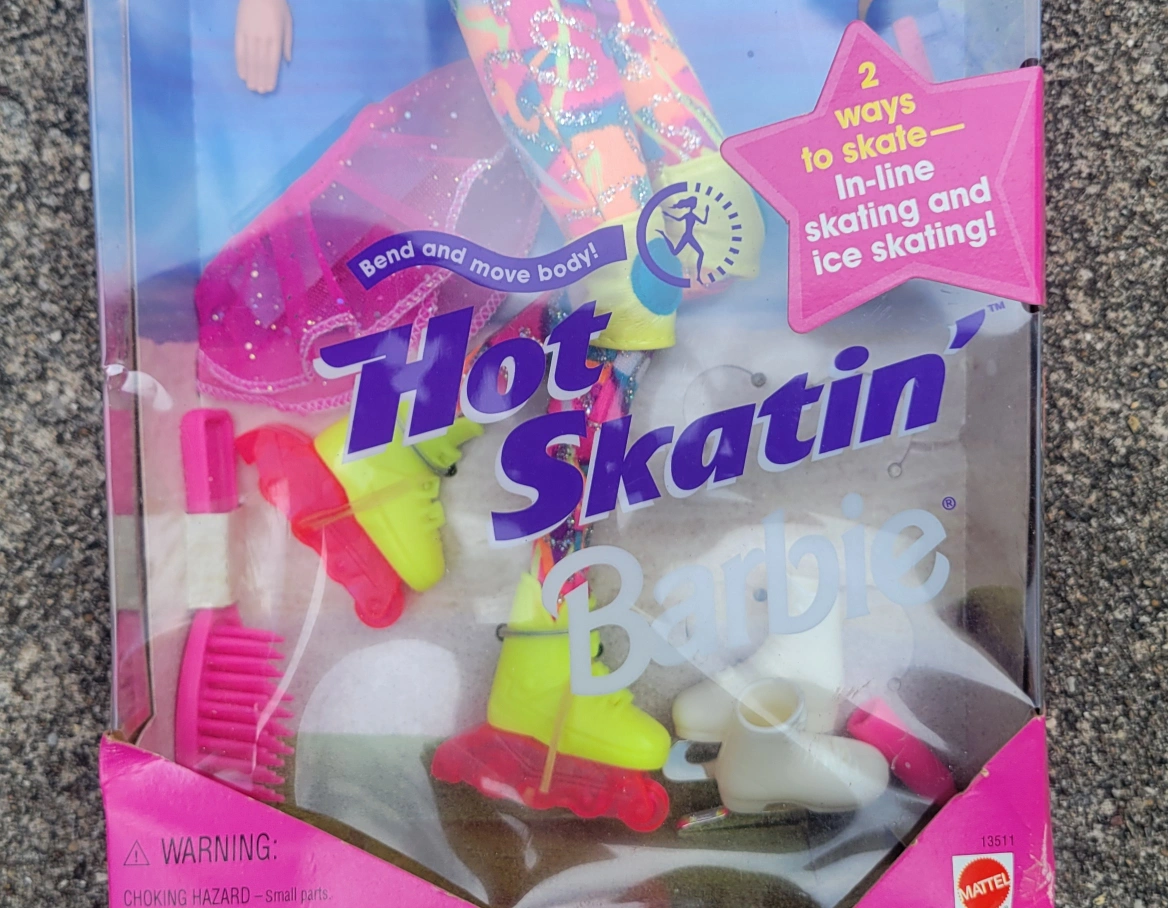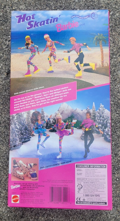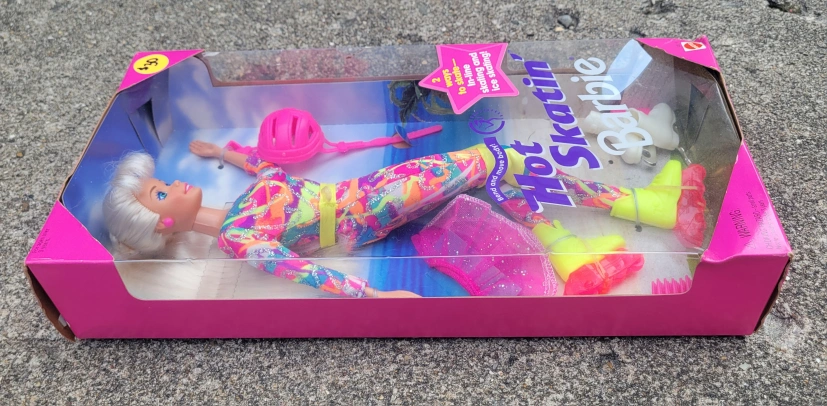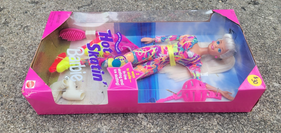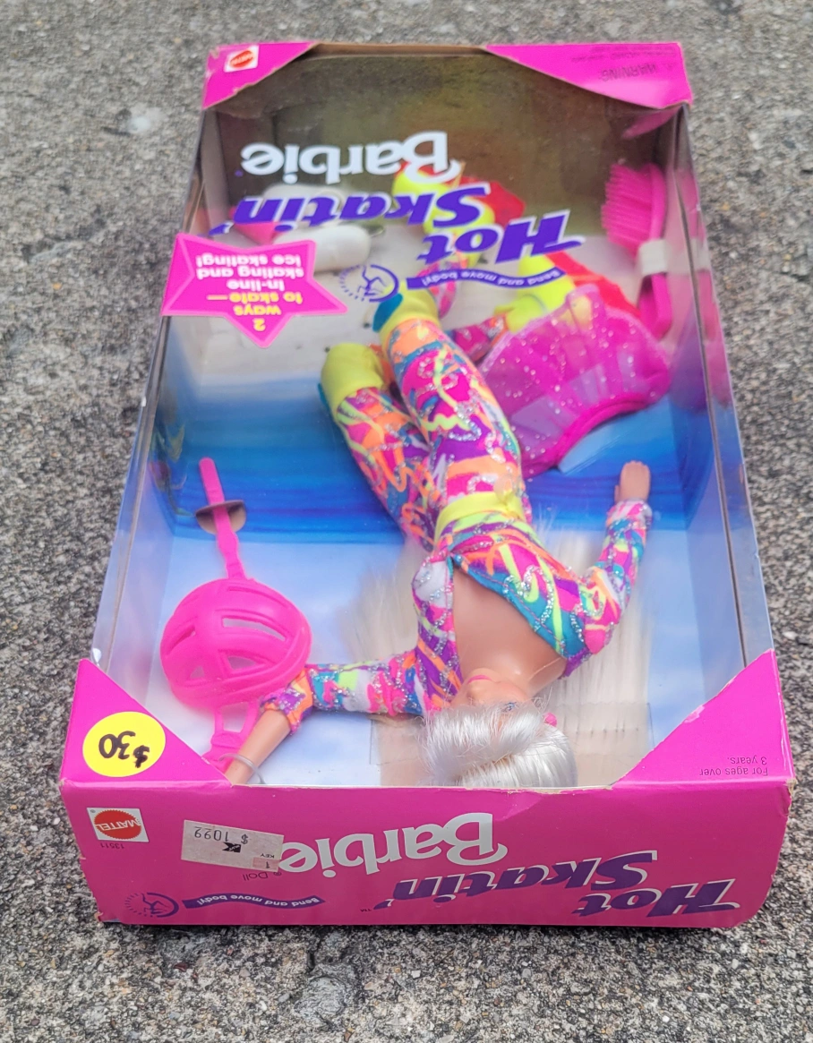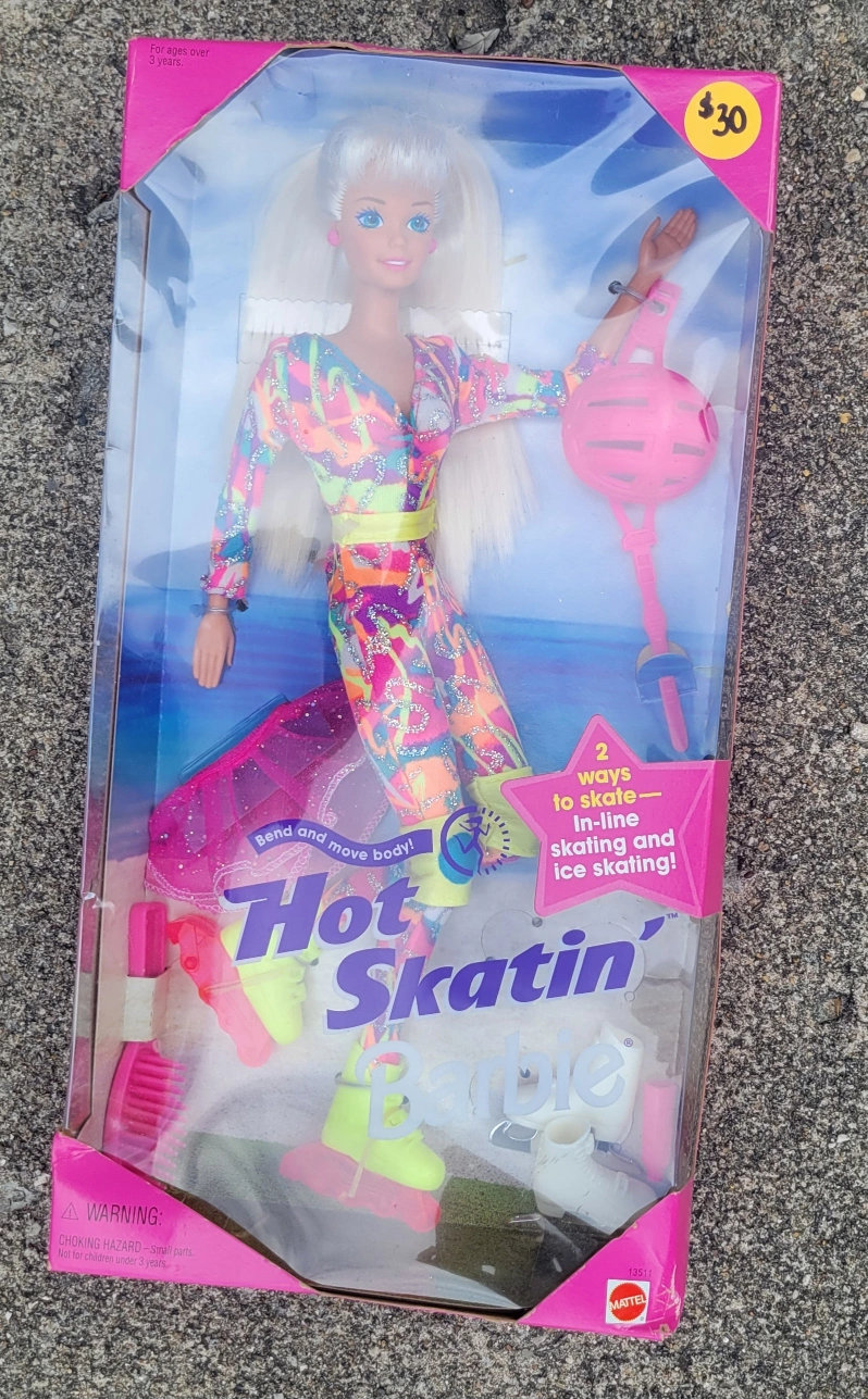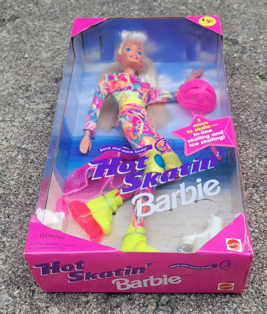 Selling a brand new, in-box, Hot Skatin' Barbie doll! This Barbie comes with everything you see: - Helmet - Inline skates - Ice skates - Other accessories It's ready for two ways to skate: in-line skating and ice skating! The box is in good condition, and the doll has never been removed. loose pieces in box.