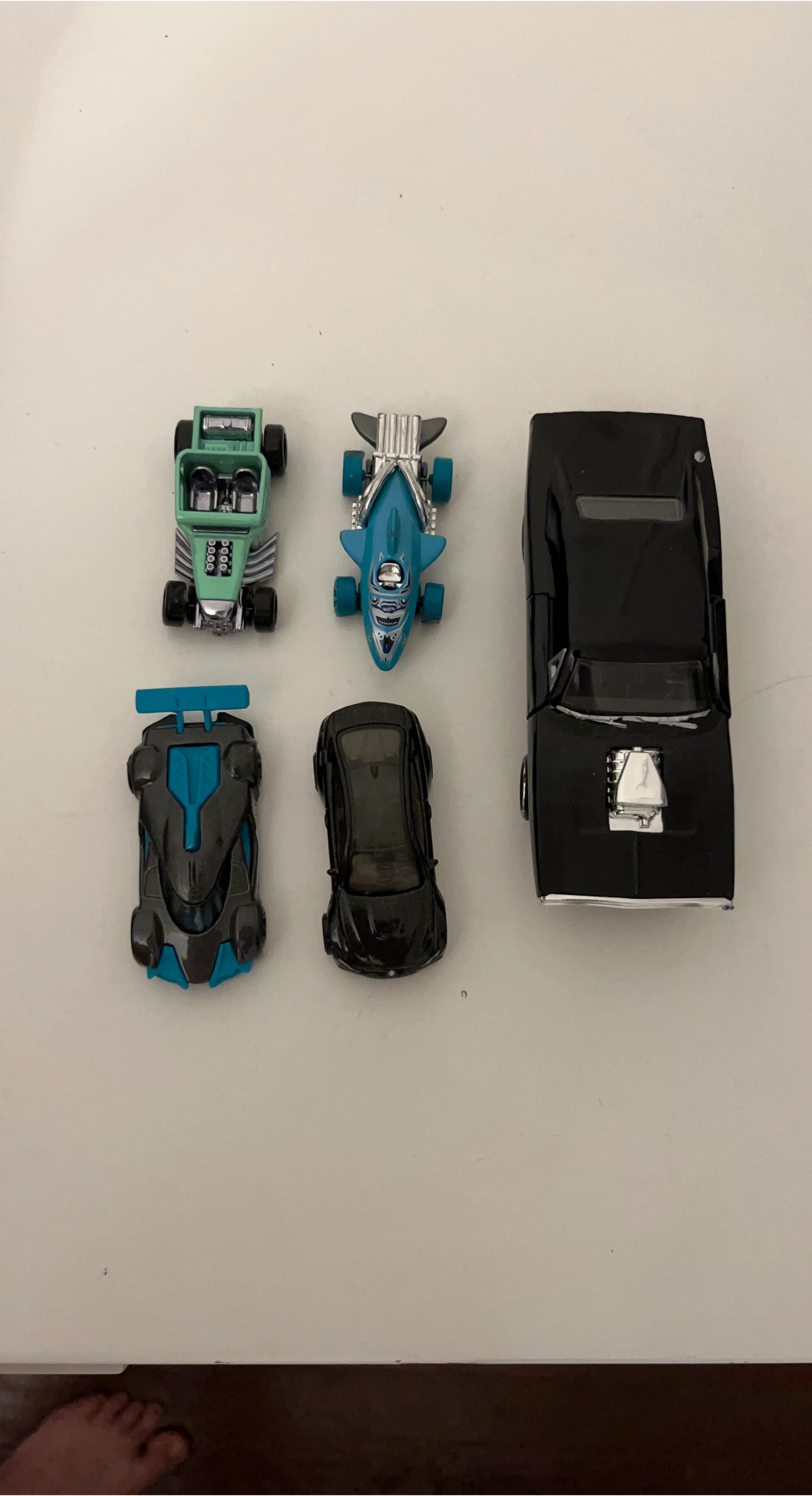Selling a collection of Hot Wheels diecast cars. There are 5 cars in total with different designs and colors. Great for collectors or kids who love playing with toy cars!