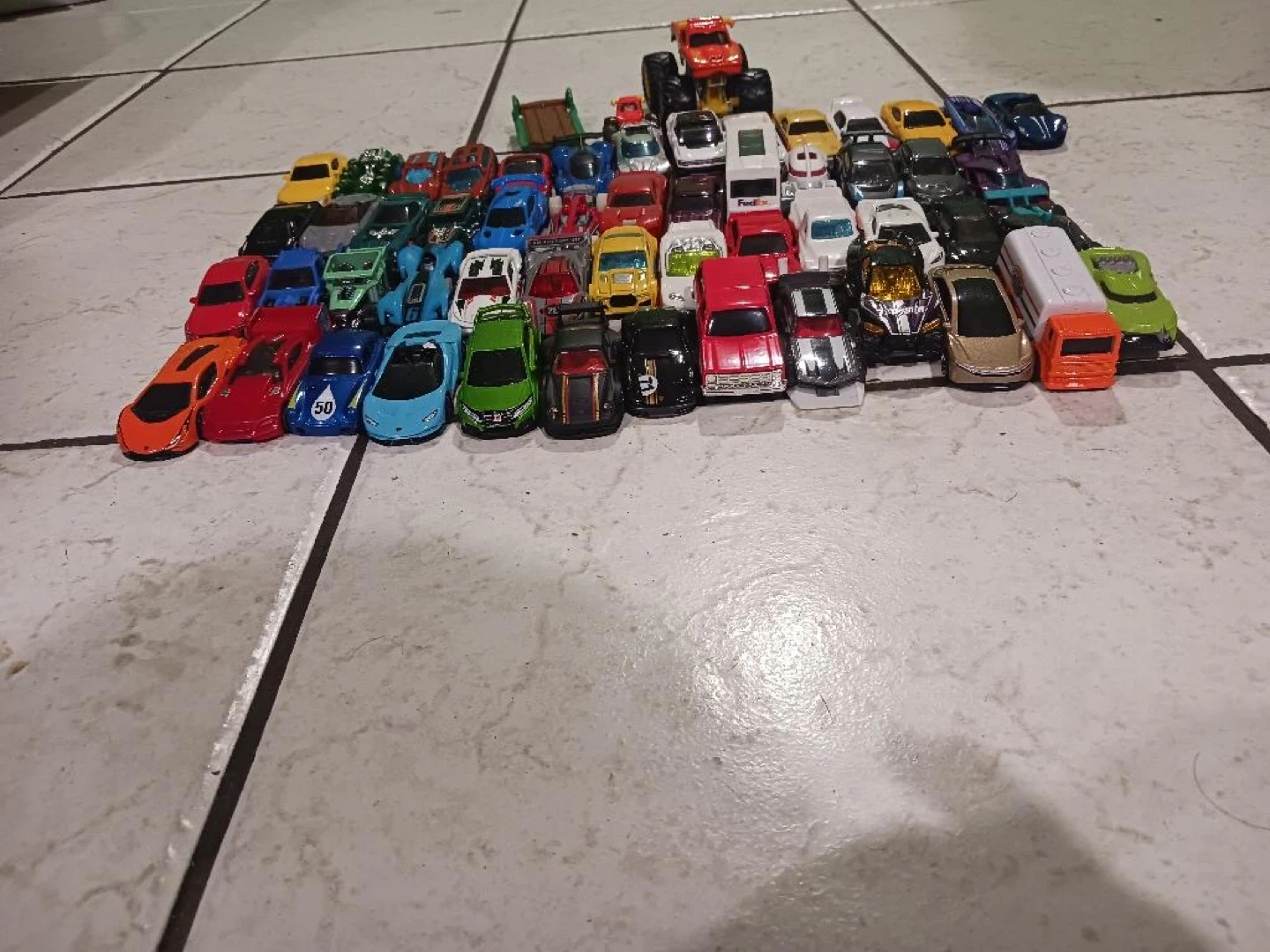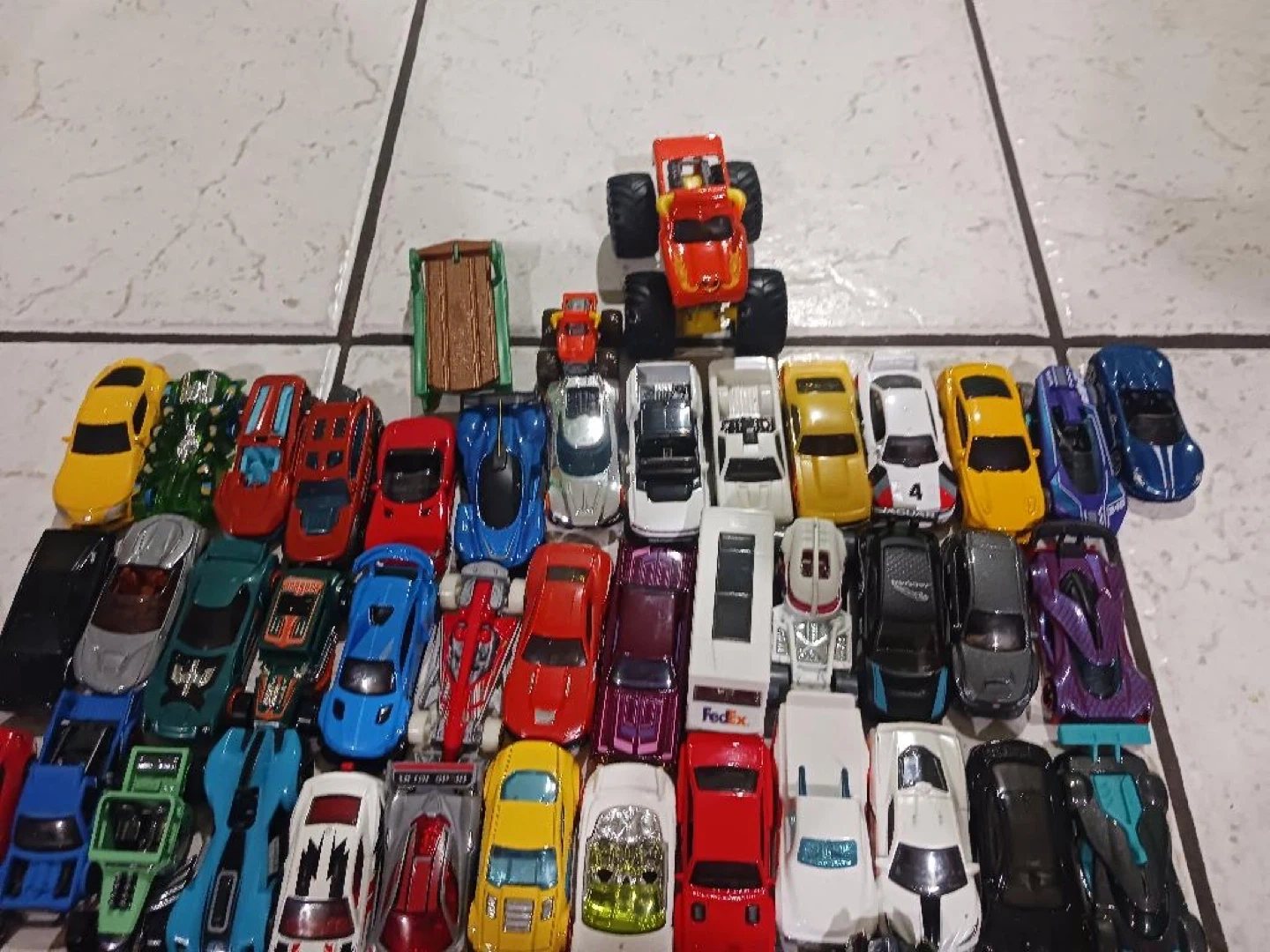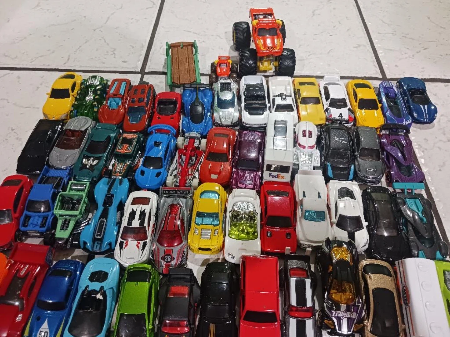 Selling a large collection of Hot Wheels and other diecast cars! There are many different models and colors. Perfect for collectors or kids who love playing with cars. Comes with a storage case to keep everything organized and easy to carry around