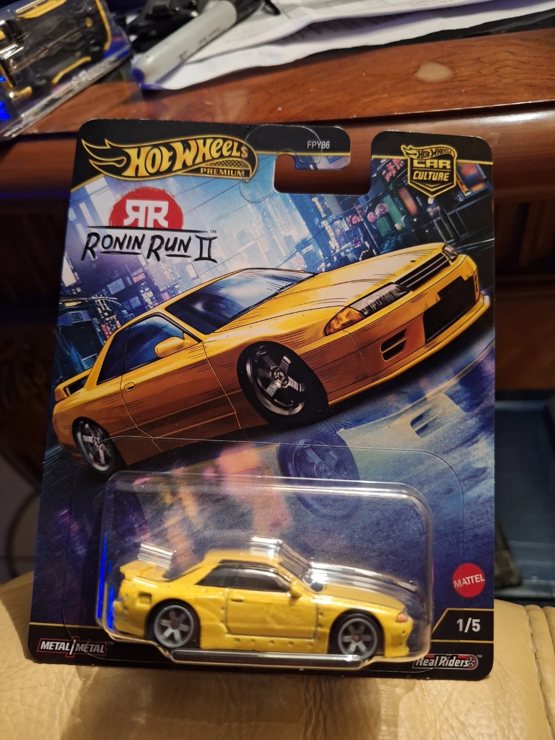 60Selling a Hot Wheels Premium Ronin Run II Nissan Skyline GT-R (R32). It's part of the Car Culture series and is in great condition! The package indicates it's suitable for ages 3 and up