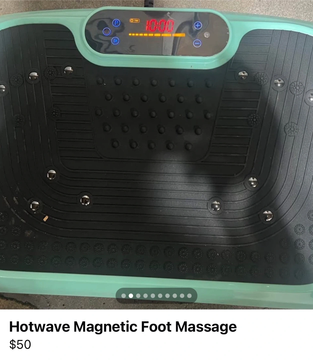 15I'm selling a Hotwave magnetic foot massage device. It helps relieve foot pressure and reduce burden. It also comes with a remote! $50