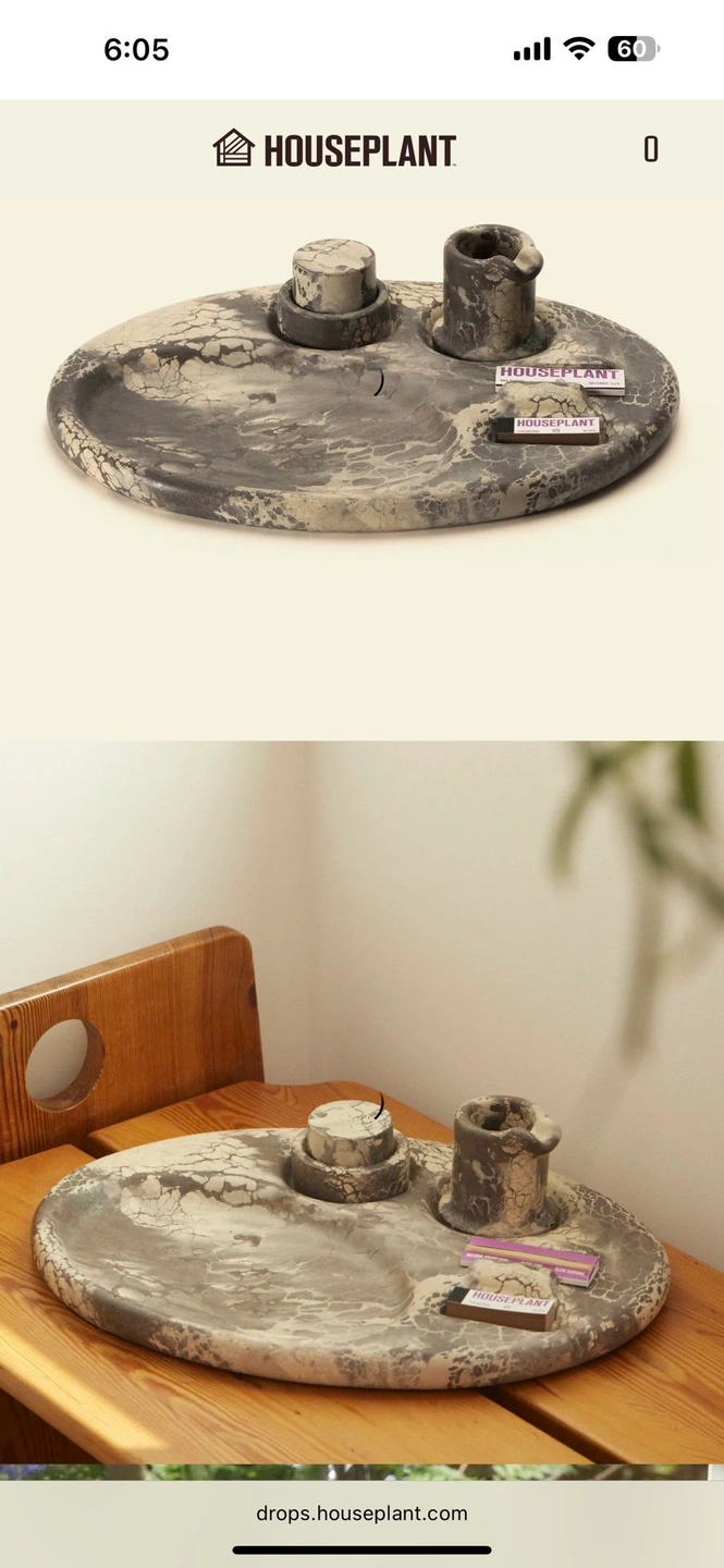 Original Houseplant ashtray with molded indents for rolling, a molded papers holder, and ash tray & grinder resting spots. Originally purchased for $500 when initially released in 2021. Used as decorative art, minimal use. Original Grinder included. Color: Gray Type: Artistic Rolling Tray Original Or Reproduction: Contemporary original