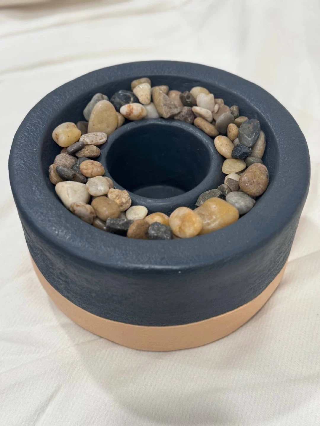80Selling a brand new HouseToHome 10-inch diameter tabletop fire pit! It comes with natural stones included and is suitable for indoor or outdoor use. Requires gel fuel can (4 in H x Max 3.5 in dia) to put in the cylinder (gel fuel can is not included).