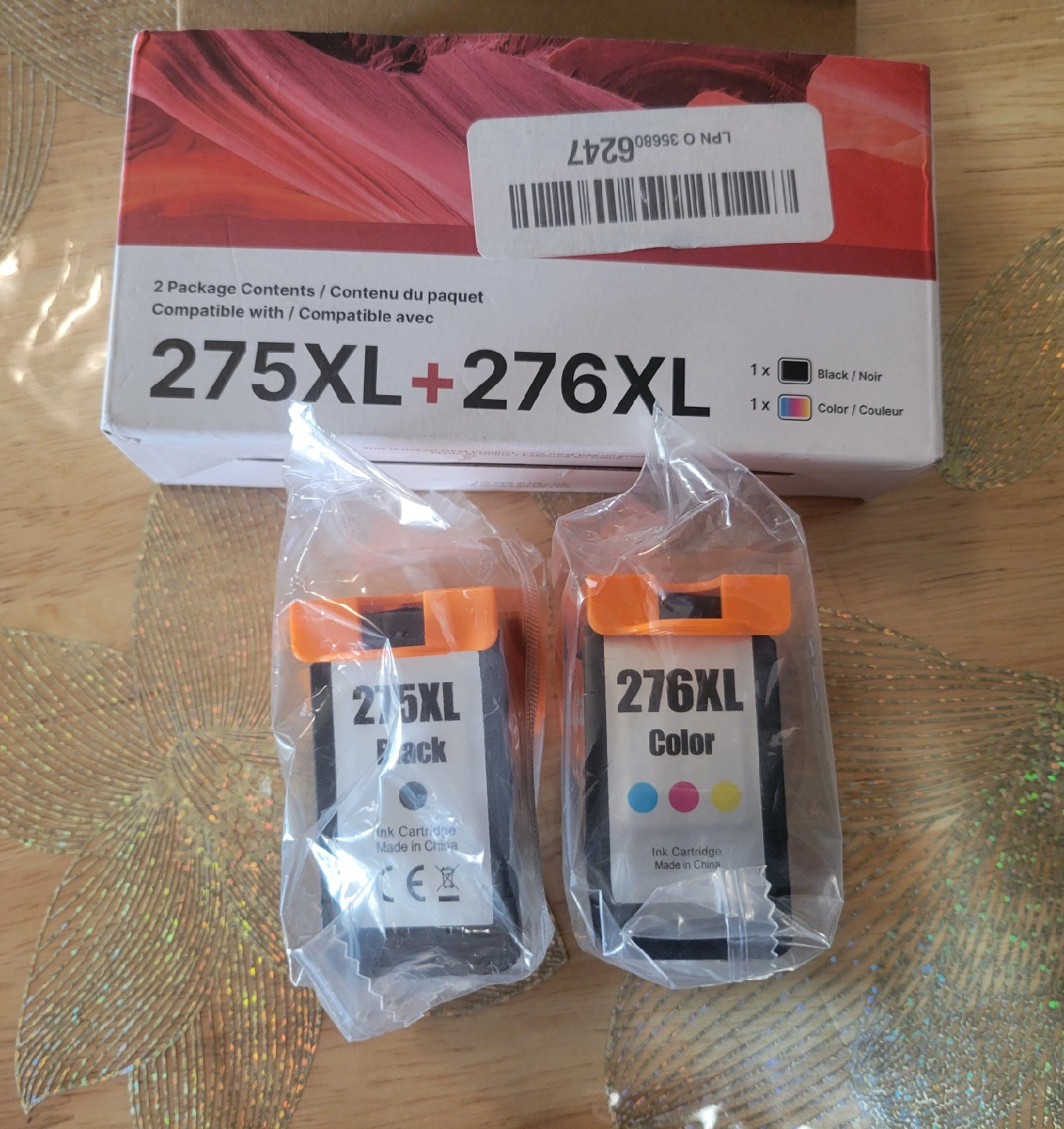 Selling a brand new, unopened set of HP 275XL black and 276XL color ink cartridges! Compatible with a range of HP printers, this package includes both a black and a color cartridge, ensuring vibrant and sharp prints. The box is included and shows an expiration date of 2028 May 09