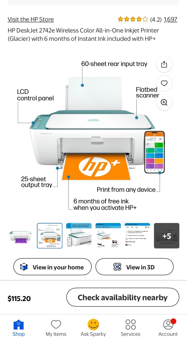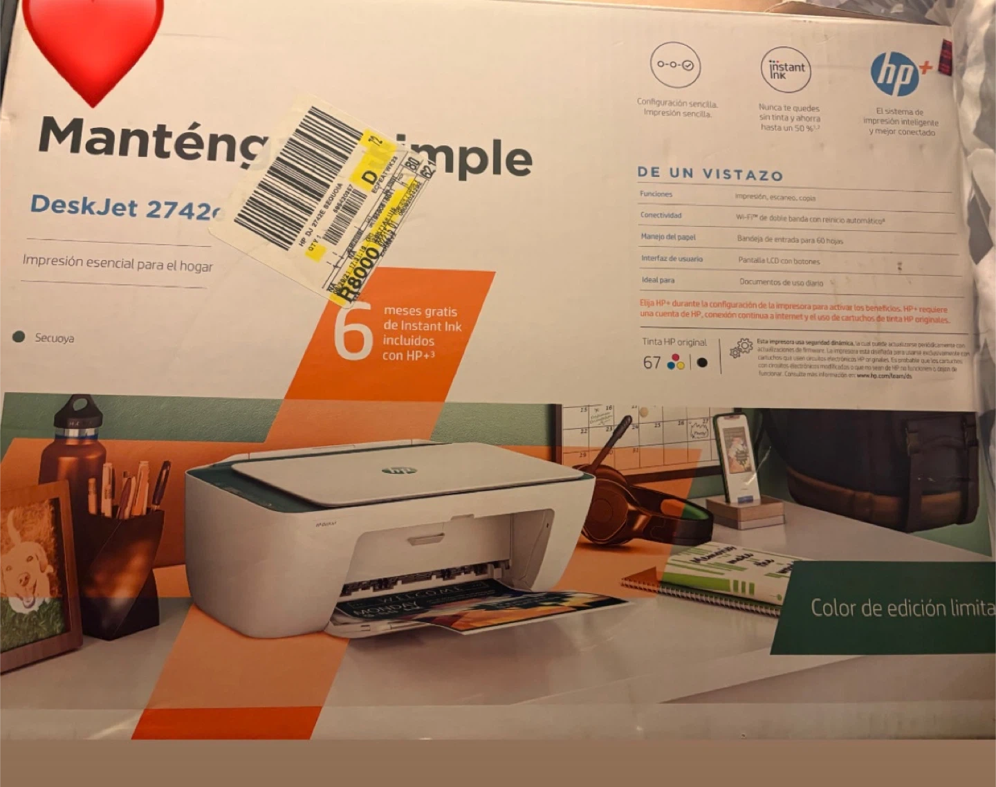 30Selling an HP DeskJet 2742e Wireless Color All-in-One Inkjet Printer. It features print, scan, and copy functions, and has Wi-Fi connectivity. The printer has a 60-sheet input tray and an LCD control panel. Great for everyday documents!