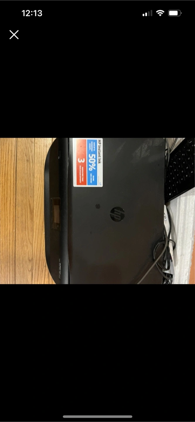 Selling an HP printer that uses Instant Ink. It has a sticker on it that says it can save you up to 50% on ink. It also says you can get 3 months free.