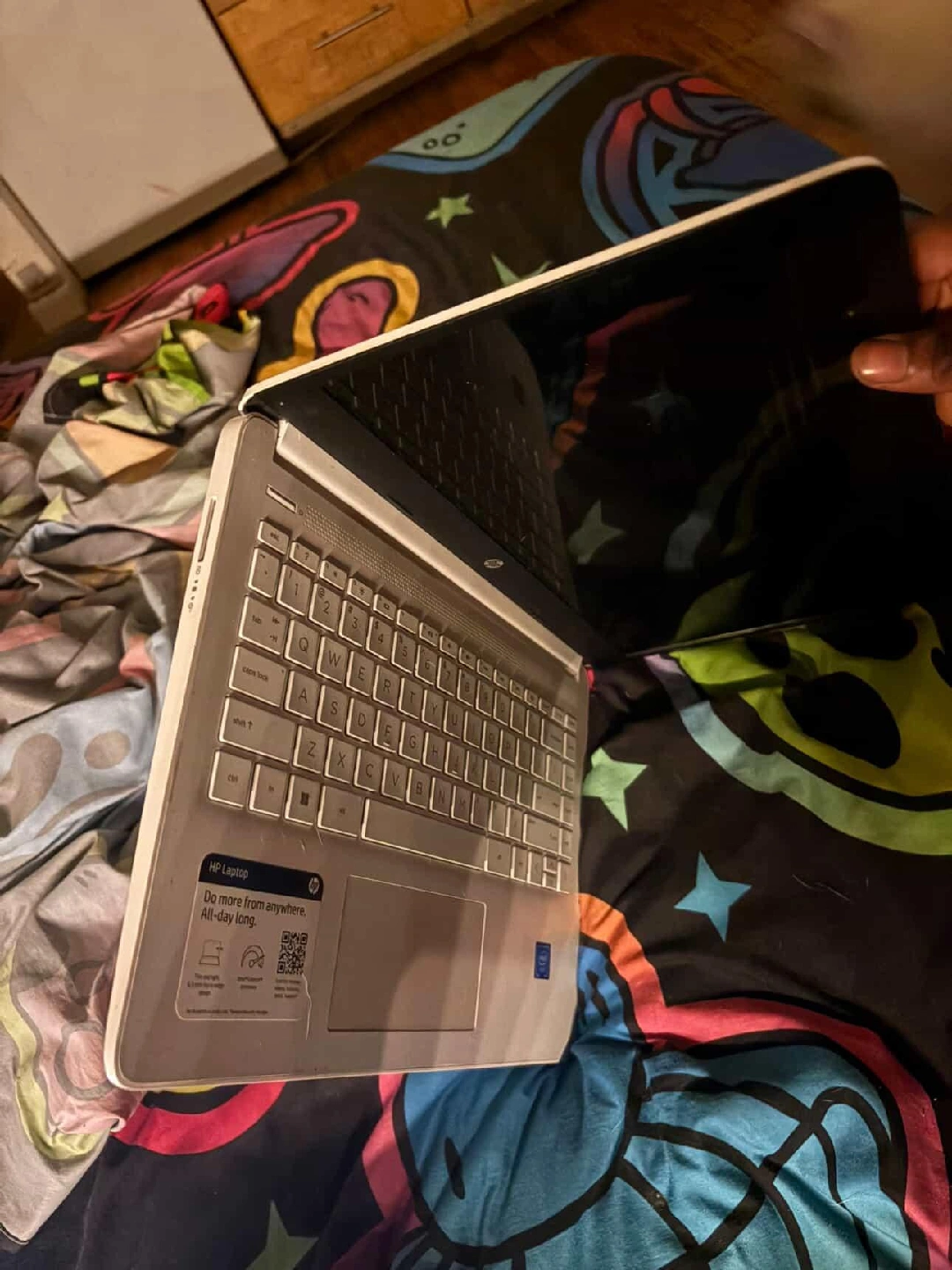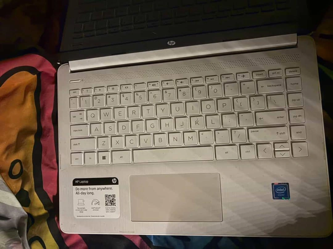 Selling a used HP laptop. It has some signs of wear and tear, as shown in the photos. It's still functional and ready for a new home!