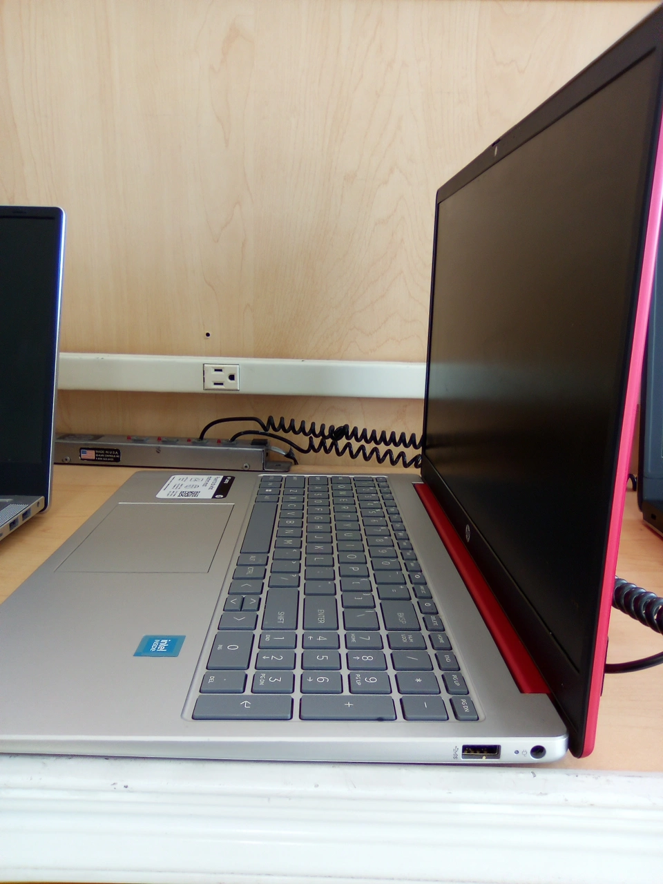 Red and silver laptop. Includes power cord. windows 11 home, 118gb hard drive, 4gb ram Layaway & in house financing available open Mon -fri 10am/6pm sat 10am/5pm 2337 w cermak rd