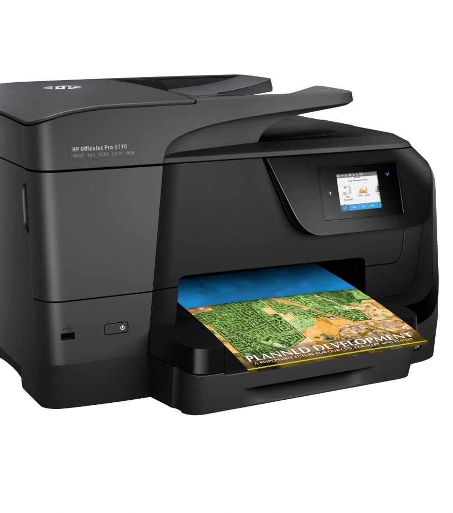 666Selling a used HP OfficeJet Pro 8710 printer. It's in good working condition and ready for a new home! Great for printing, scanning, copying, and faxing. This full-featured all-in-one delivers professional-quality color for up to 50% lower cost per page than lasers.[1] Stay productive and tackle high-volume jobs with print, fax, scan, and copy versatility. Ideal for small workgroups who need professional-quality, affordable color and versatile all-in-one capabilities in the office. Dynamic security enabled printer. Only intended to be used with cartridges using an HP original chip. Cartridges using a non-HP chip may not work, and those that work today may not work in the future.