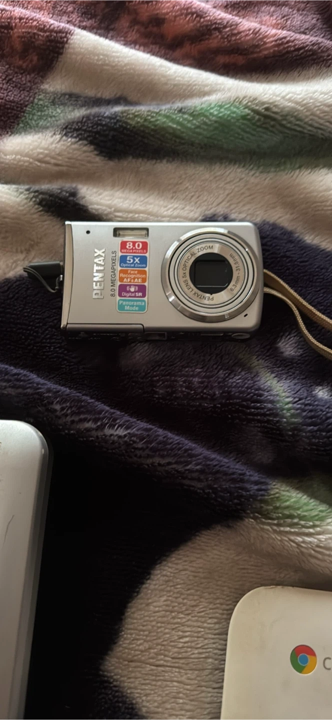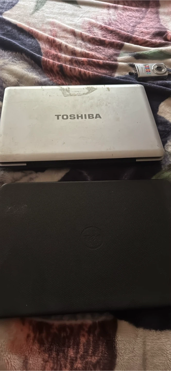 Selling a variety of electronics. There is an HP laptop, a Toshiba laptop, and a Pentax camera. All items show signs of use.