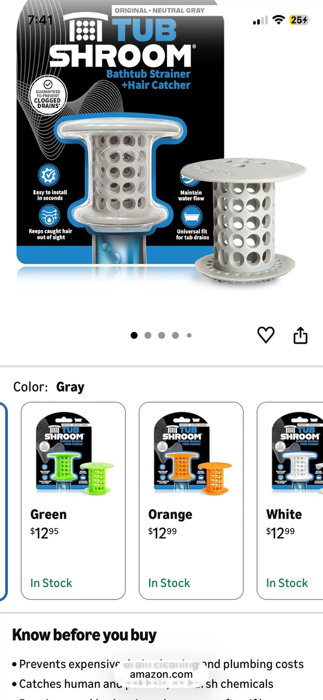 This TubShroom is a bathtub strainer and hair catcher. It's designed to prevent clogged drains and maintain water flow. The item is green and offers a universal fit for most tub drains.