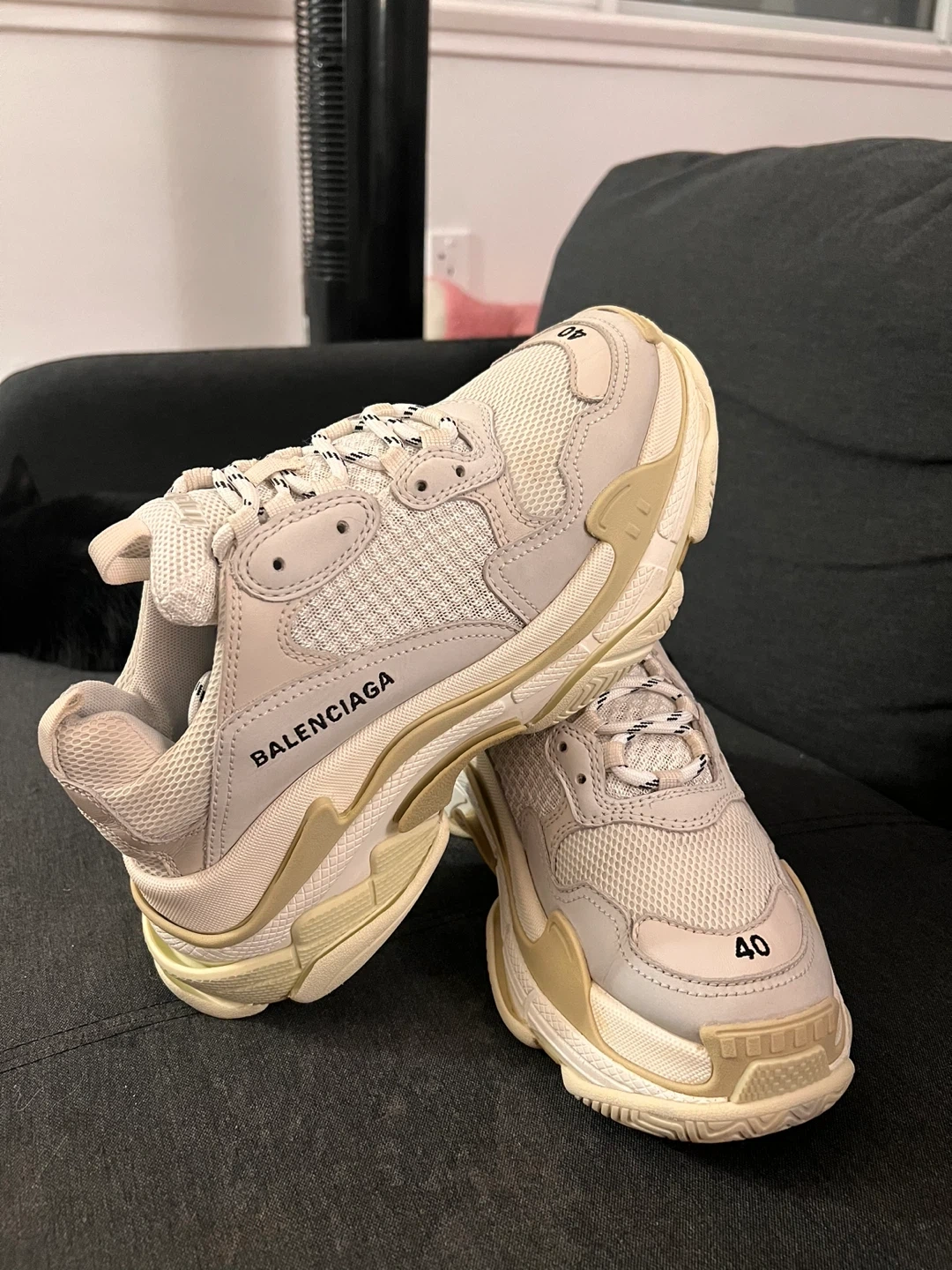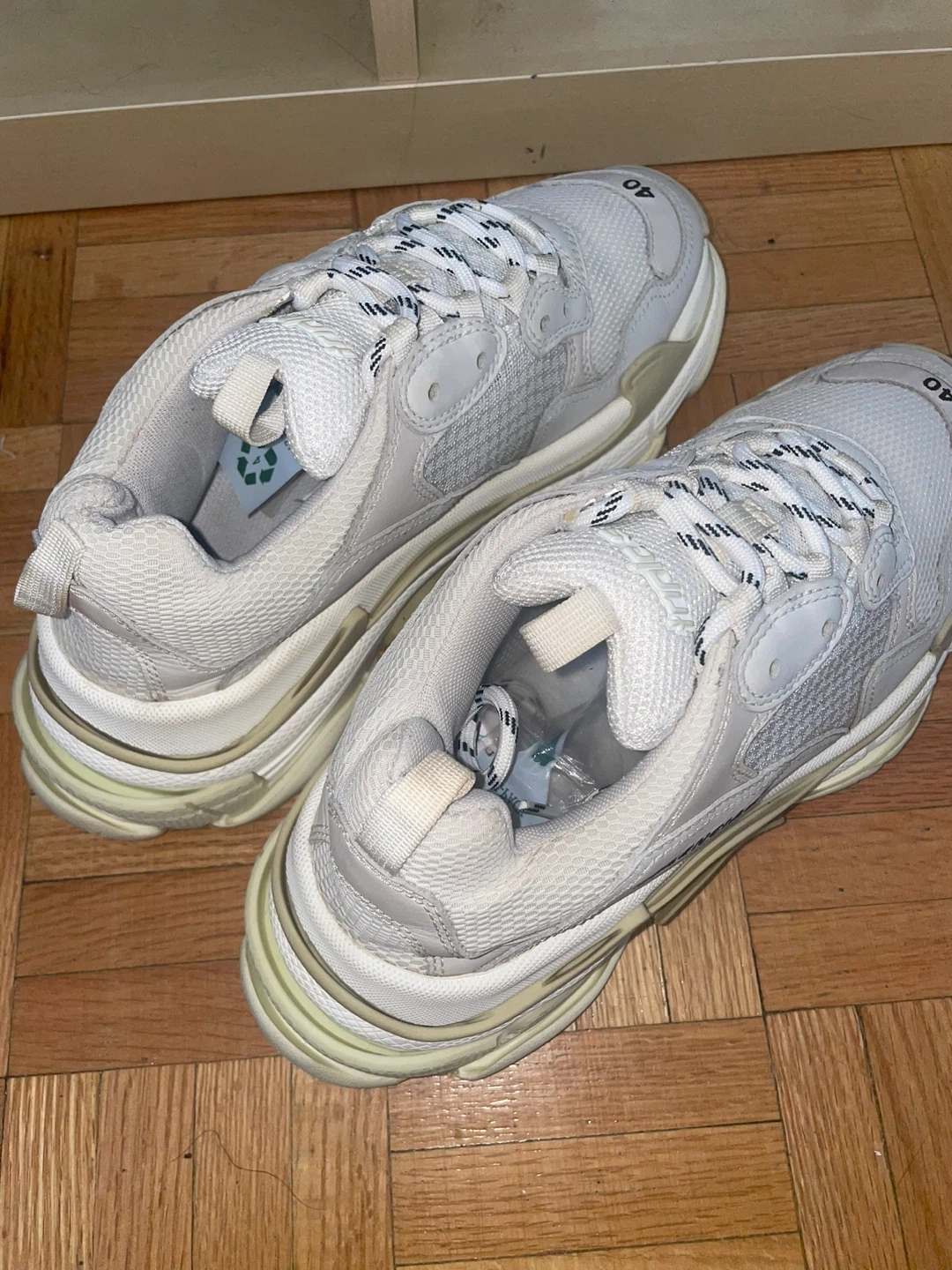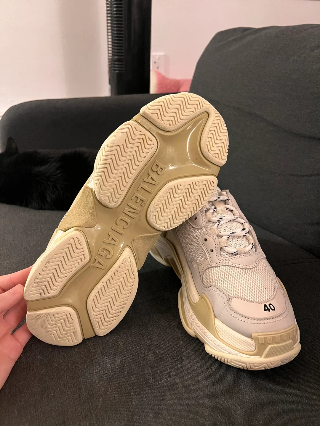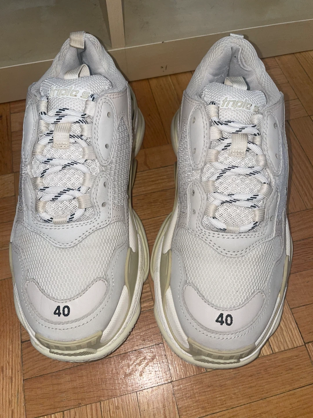Selling a pair of Balenciaga Triple S sneakers in size 40. They're in great shape and ready for a new home! The unique design and quality craftsmanship make these a standout addition to any wardrobe. Shoes came with receipt but no box.