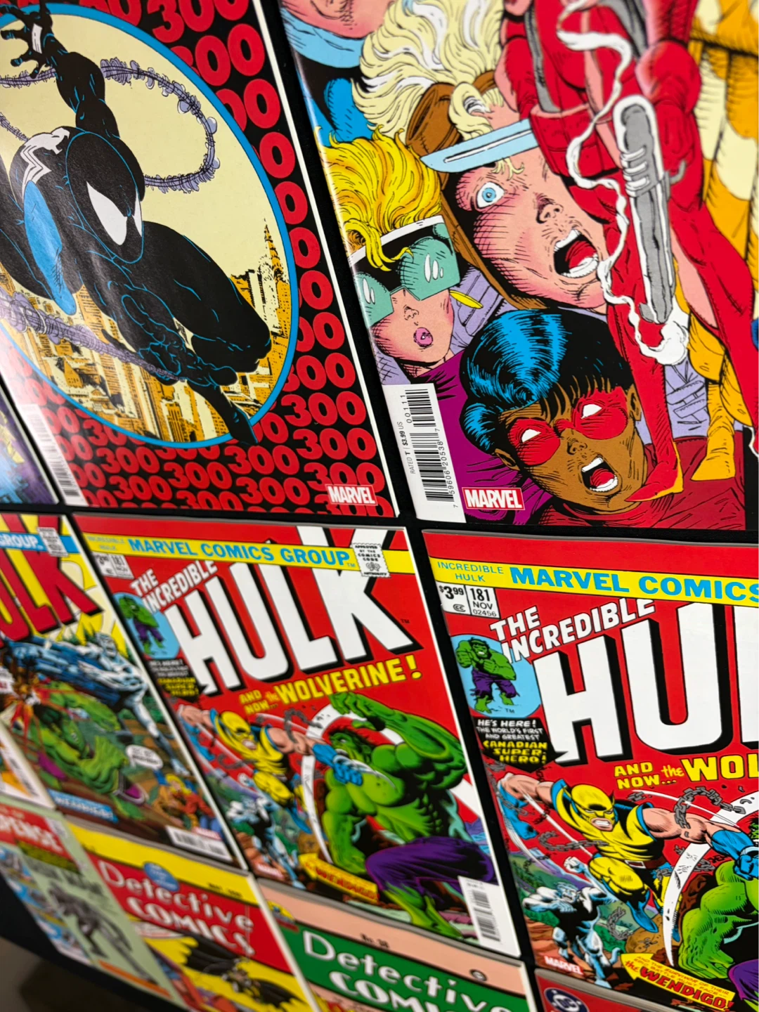 A collection of Marvel and DC Facsimile (reprint) comic books featuring iconic first appearances of characters like The Punisher, Wolverine, Iron Man, Bane, Deadpool, Venom, Black suit Spider-man, Robin, Batman, New X-Men etc etc etc.