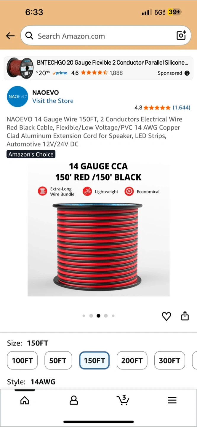 14 Gauge Wire 150FT, 2 Conductors Electrical