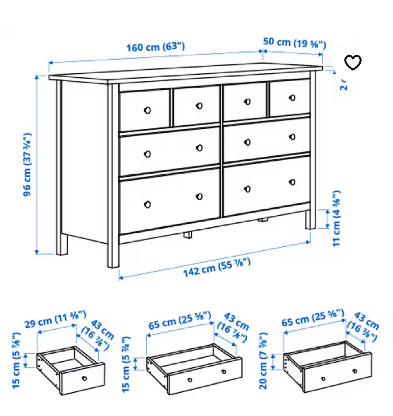IKEA Hemnes 8-Drawer Dresser White 63 x 37