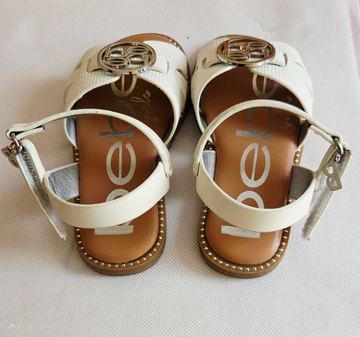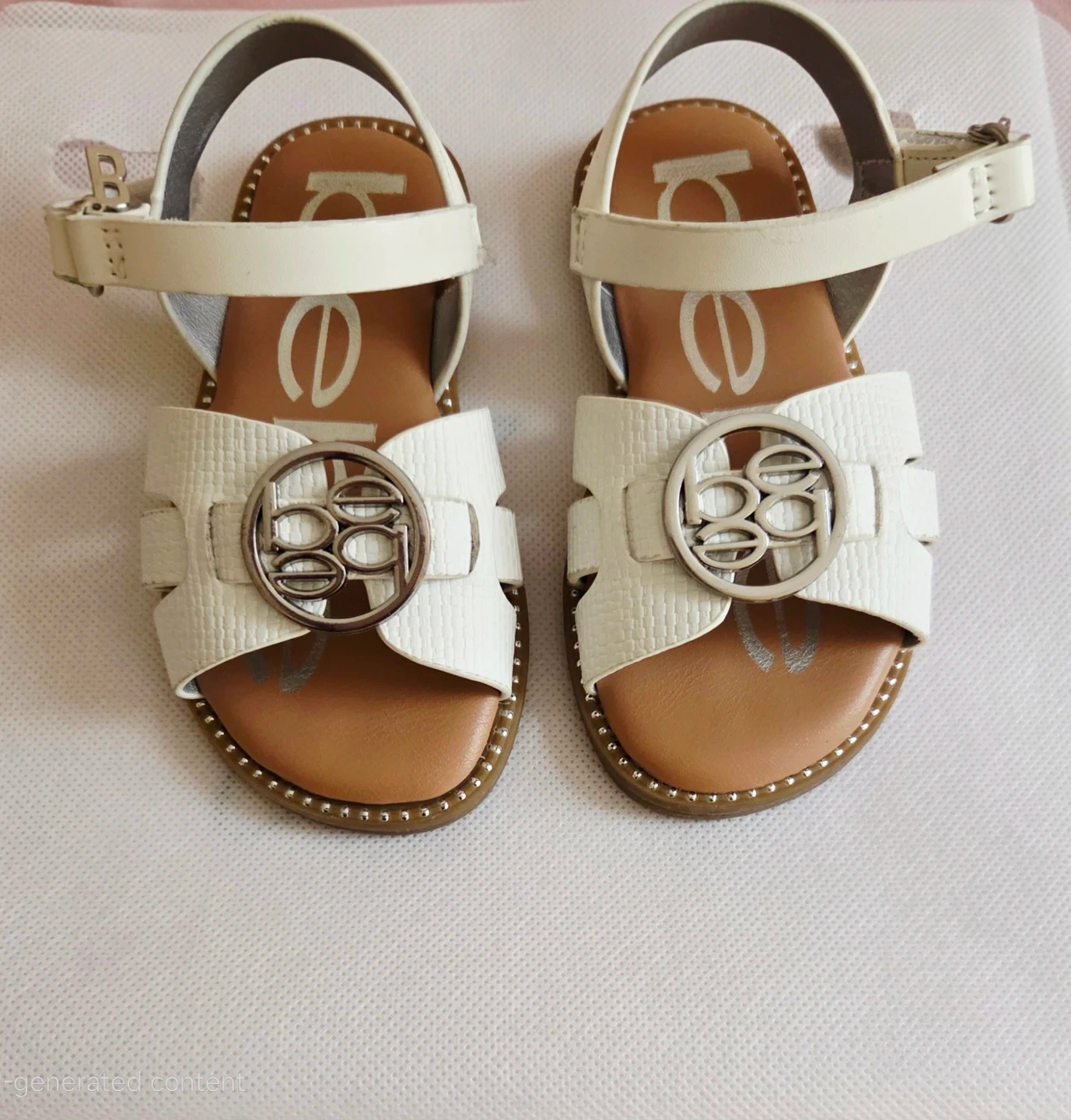 Bebe White Embellished Strap Sandals - Kids Size