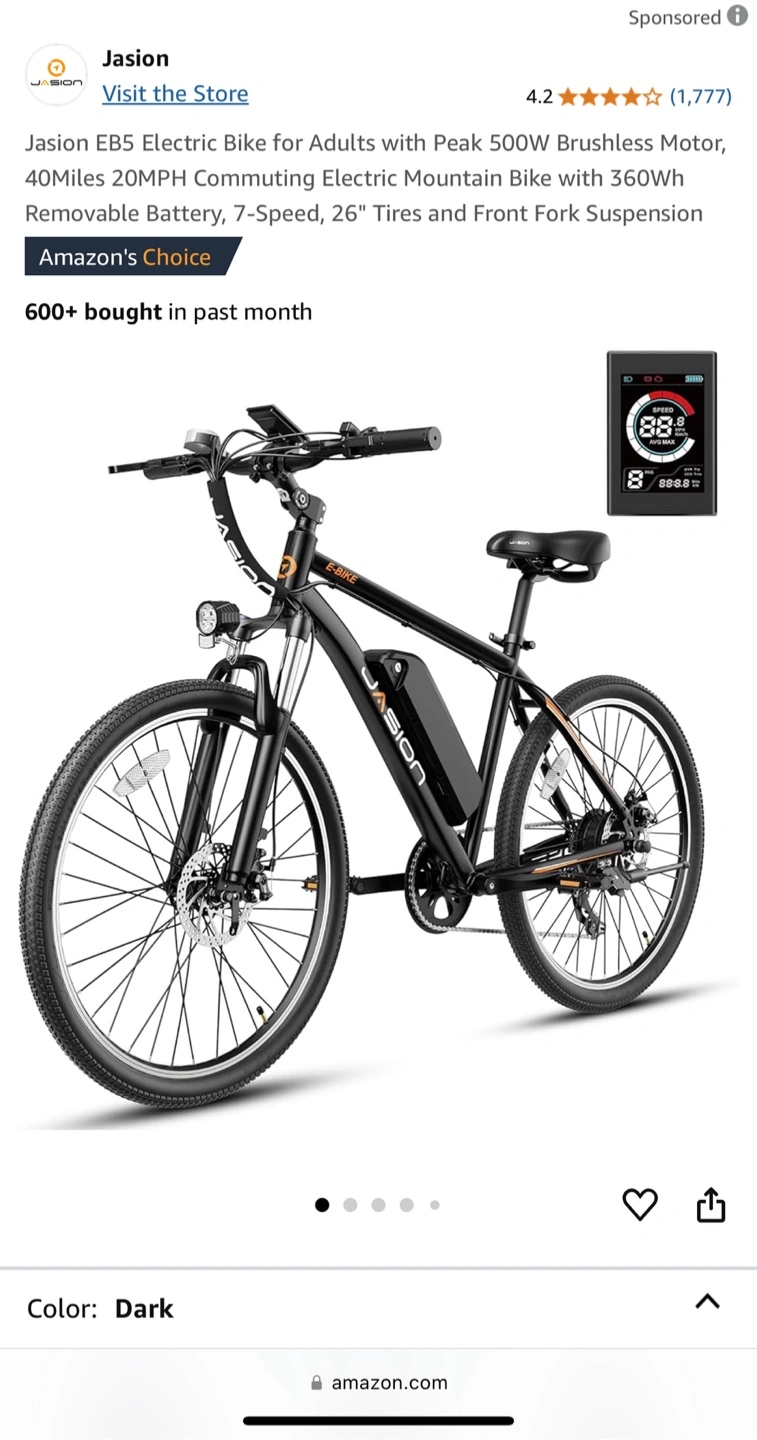350 W Motor & Upgraded Display: The EB5 electric bike equipped with a 500 W peak motor, boosted a top speed of 20 MPH. The display panel has adjustable backlight brightness from 1-5 levels. In addition, the upgraded LCD Display provides riding data support, such as ODO/MAX/AVG SPEED, PAS mode can be customized up to 3 modes