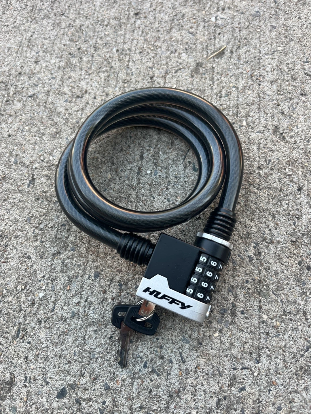 Selling a Huffy bike lock in great condition. It comes with a key for extra security. Great for keeping your bike safe and sound