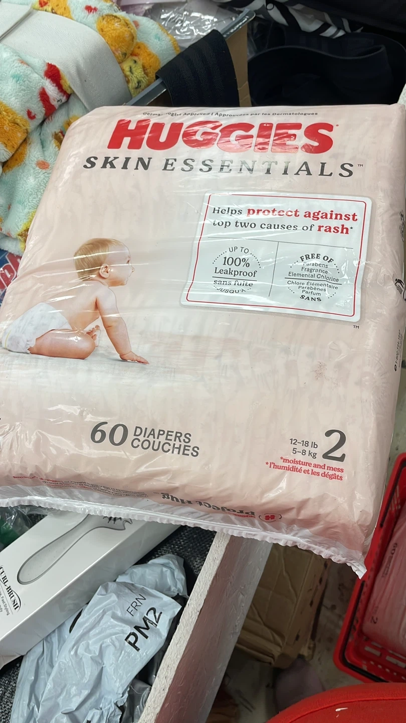 45Selling a pack of Huggies Skin Essentials diapers, size 2. The pack contains 60 diapers. They are designed to help protect against the top two causes of rash and are free of parabens, fragrance, and elemental chlorine. These diapers are up to 100% leakproof!