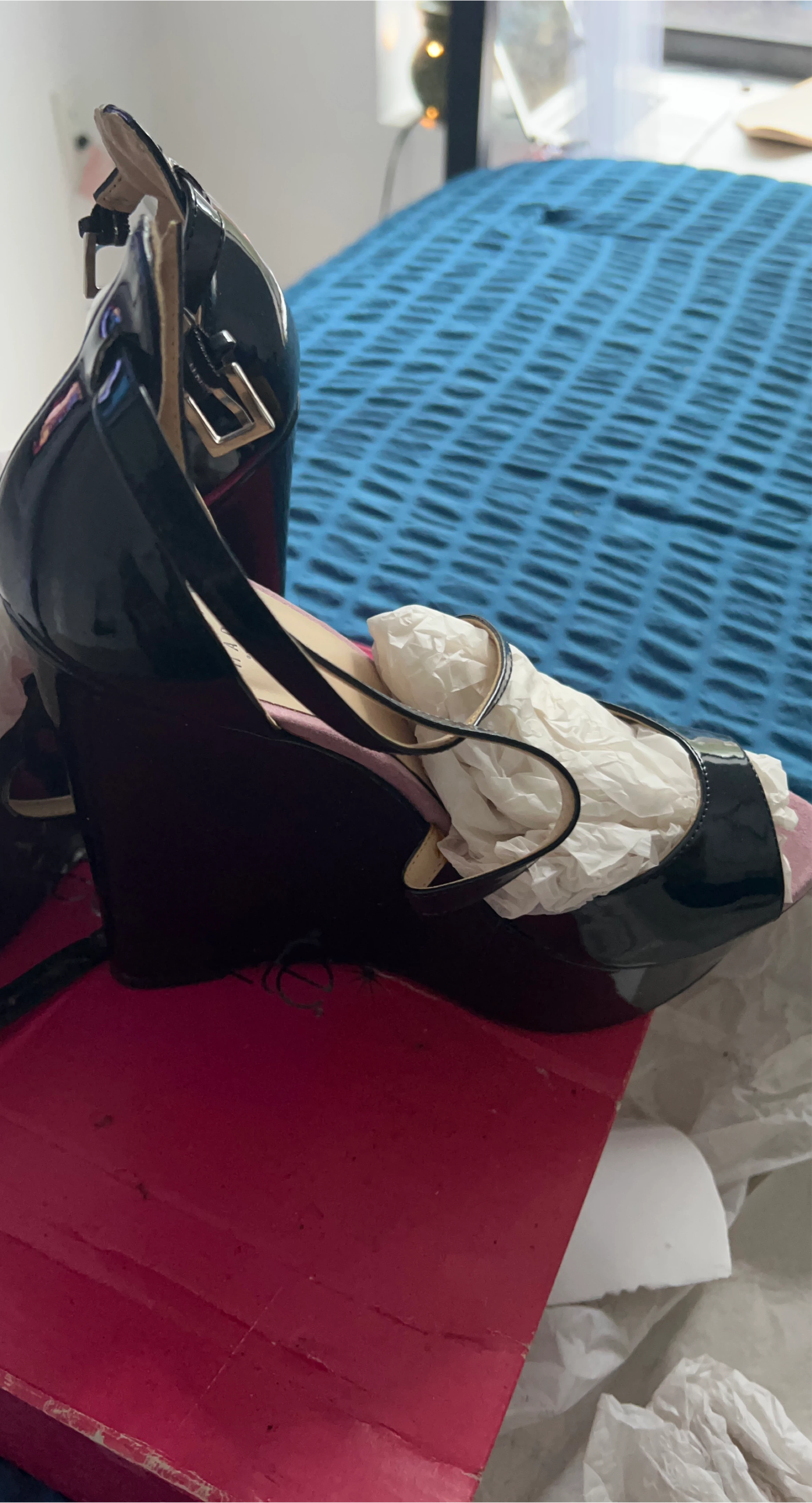 Black Patent Leather Wedge Heels