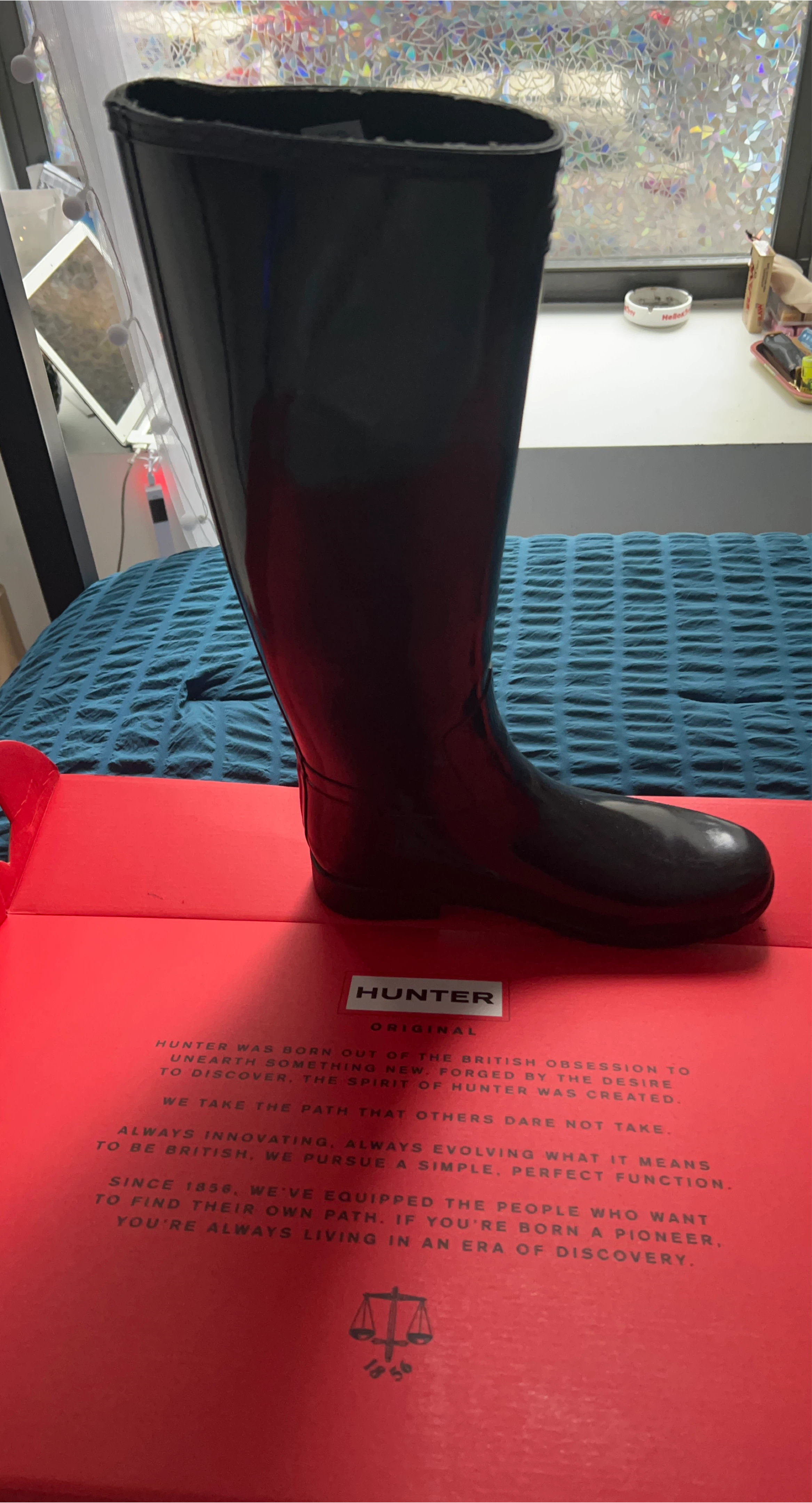 65Selling a pair of Hunter Original Tall Rain Boots in black. The boots are in great condition and ready for rainy days! The box is included.