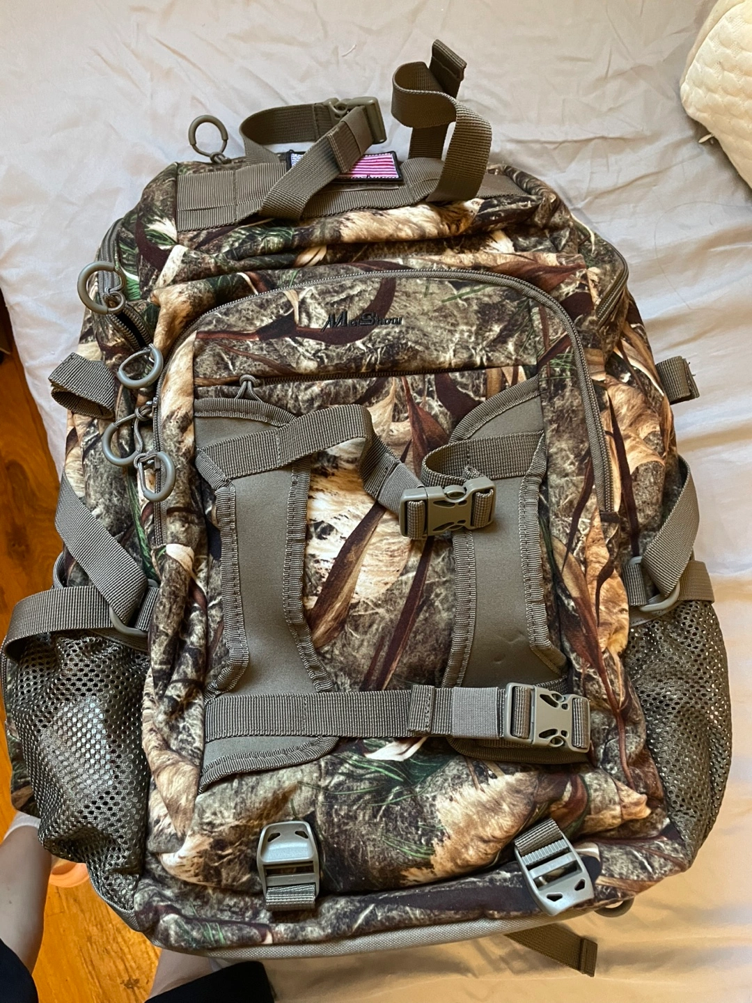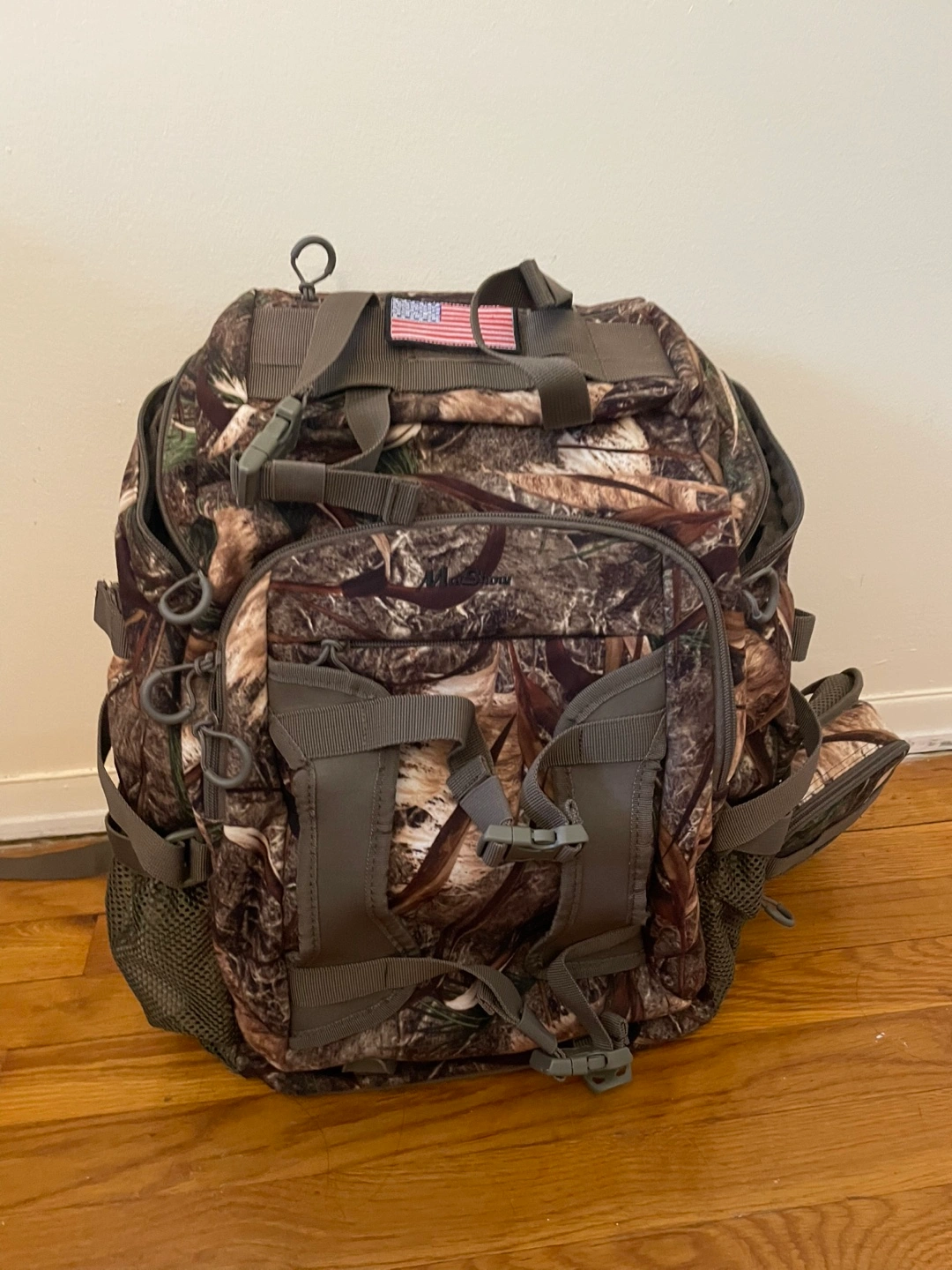 Hunting/Hiking Backpack with Rain Cover almost new I bought it from Amazon and only used once for several hours indoor, but it’s too big for me so I’m selling it before I move. It’s new and clean and super functional. Heavy-duty camouflage backpack perfect for outdoor adventures. • Size: 19.6” x 13.7” x 9” • Durable noise-cancelling polyester fabric • Removable shoulder straps, side mesh pockets, waist support • Multiple compartments & pockets for organized storage • Built-in waterproof rain cover (stored in side pocket) • almost never used, clean and spacious Pick up near 75Av E/F subway station in Forest Hills 11375. Prefer cash. Move-out sale!