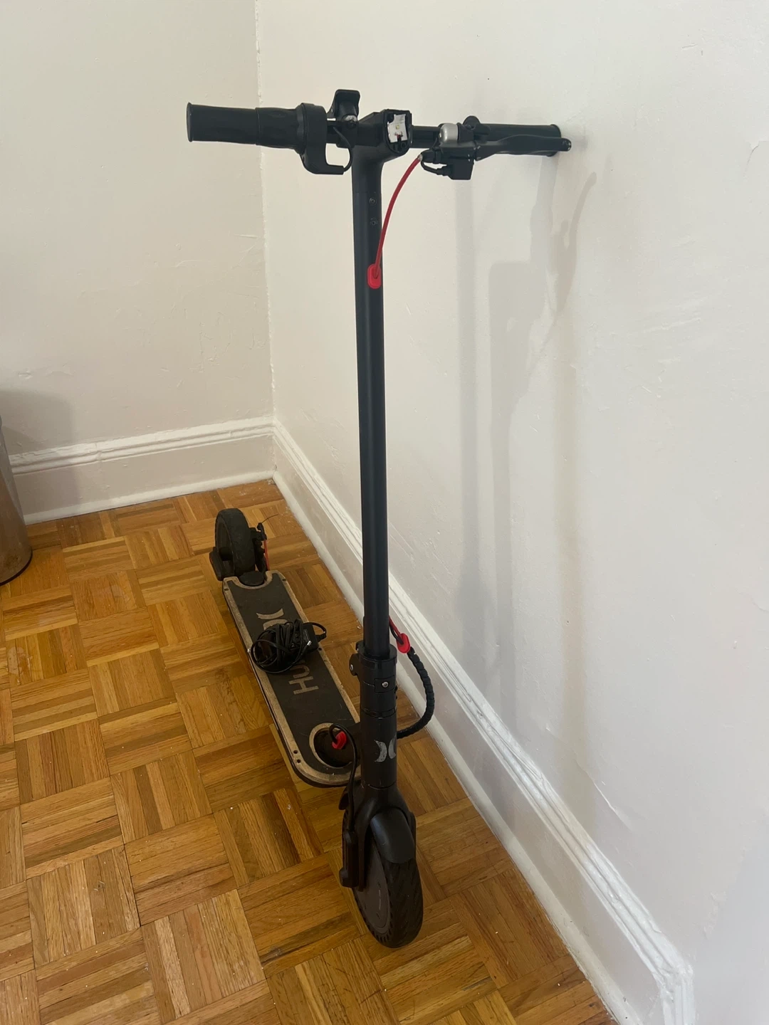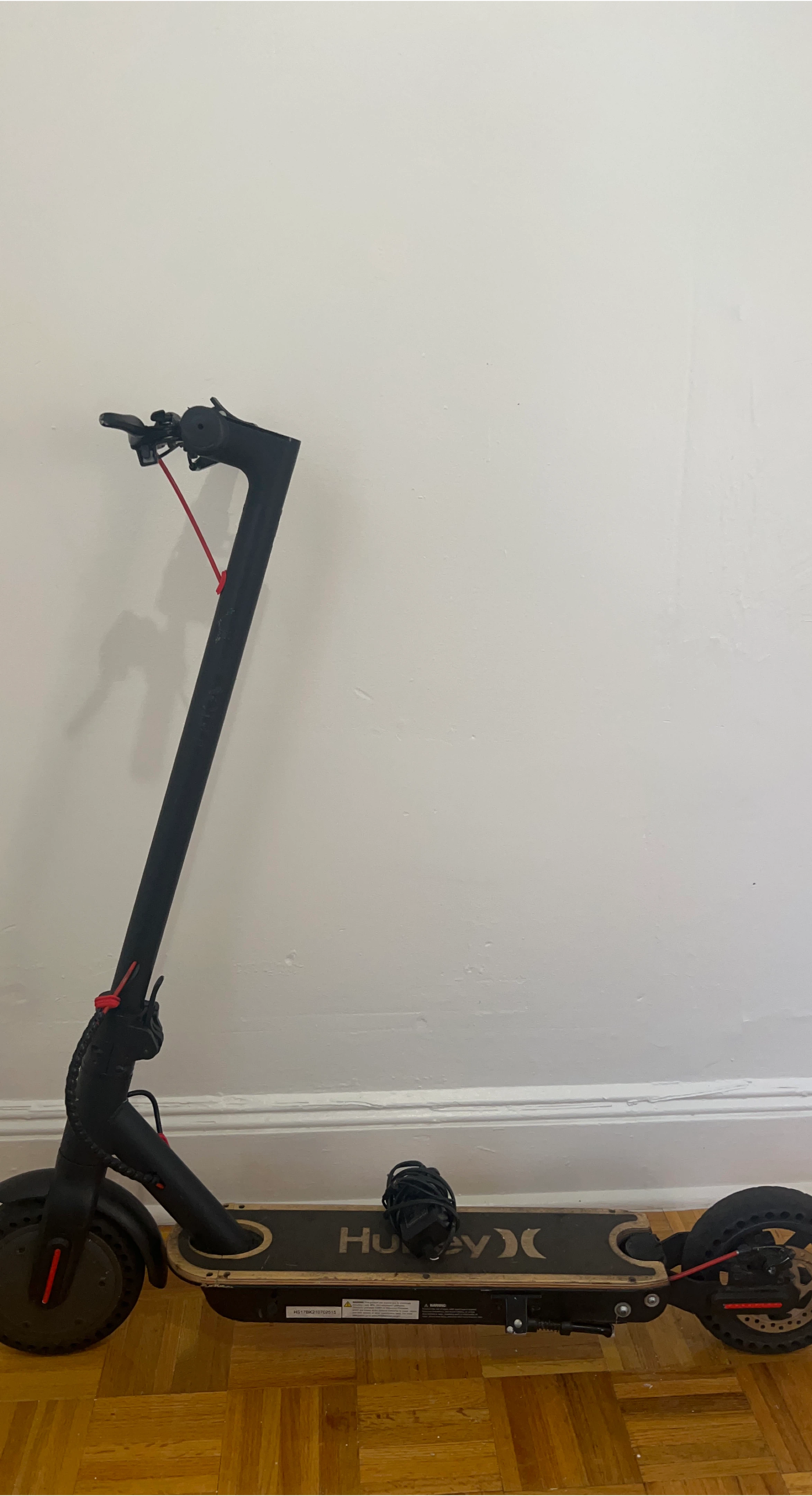 Selling a Hurley electric scooter in decent condition. It's black with the Hurley logo on the deck. Perfect for getting around town! Safety bell, brakes work . charger included.