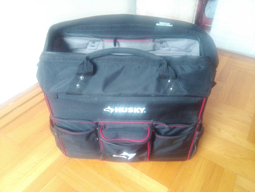 husky 18 pocket 24 inch roll around zippered waterproof tool bag $189.00 home Depot