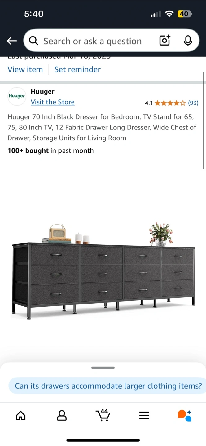 6012 Fabric Drawers. Long dresser, TV stand for 65, 75, 80 inch TV. Wide chest of drawers. Storage unit for living room. Only used for 2 months Link : https://a.co/d/2UIIb0V