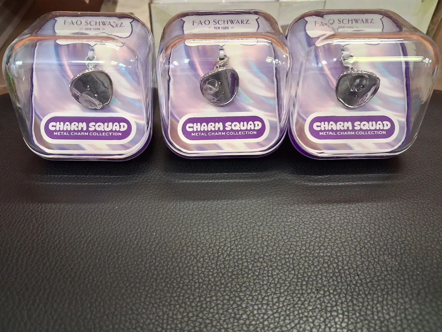 Set of three FAO Schwarz Charm Squad metal charm collections. Each charm features a unique metal design. These are great for adding to bracelets or necklaces!