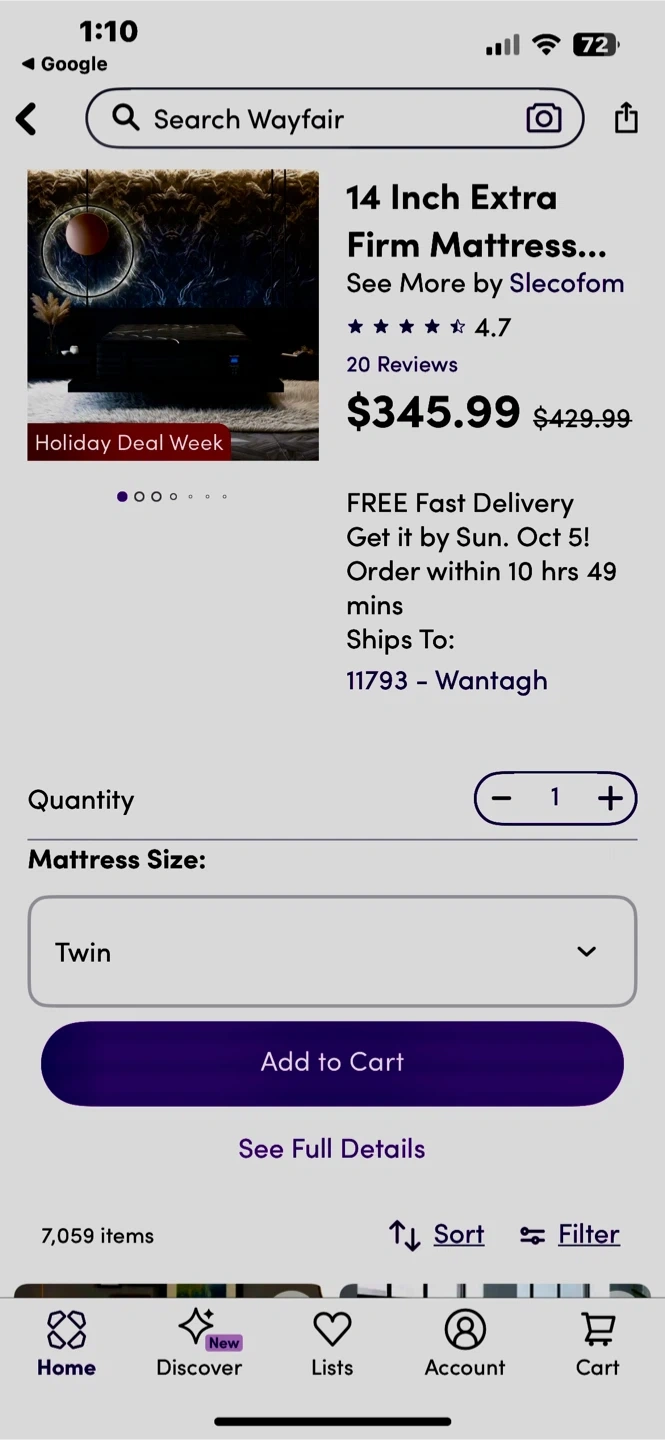 A great nights sleep 💤 is yours on this lightly used (only with protective cover) quality mattress for years to come at a terrific price..I won’t be available too long !! Currently selling on Wayfair for 🤑 hundreds more.