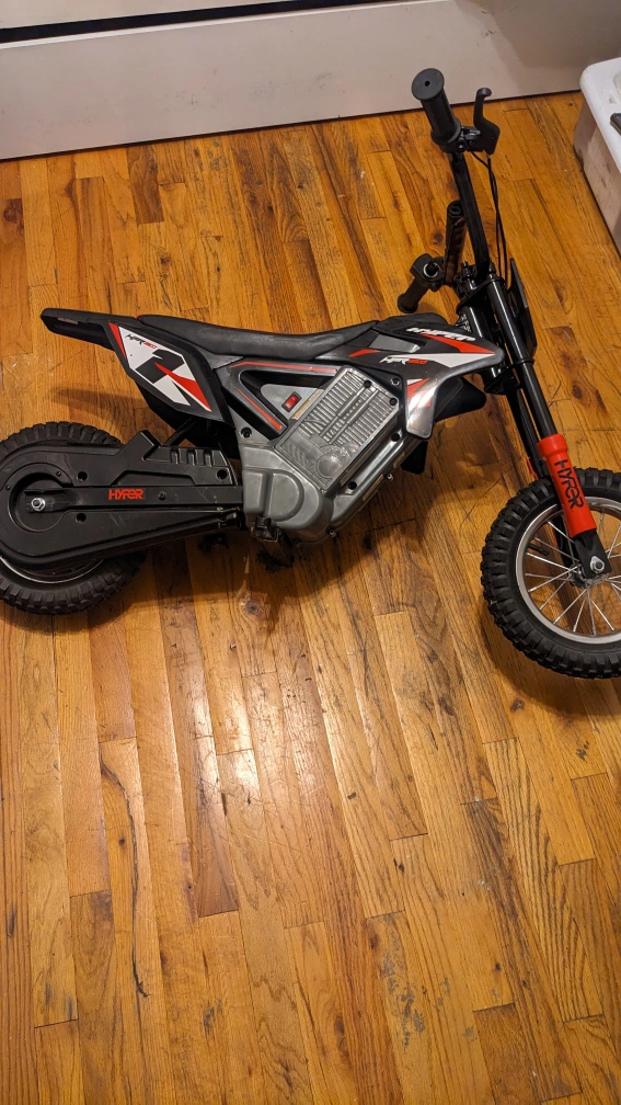10Selling a Hyper E-Ride electric dirt bike! It's in good condition and ready for some fun adventures. Perfect for kids who love to ride!