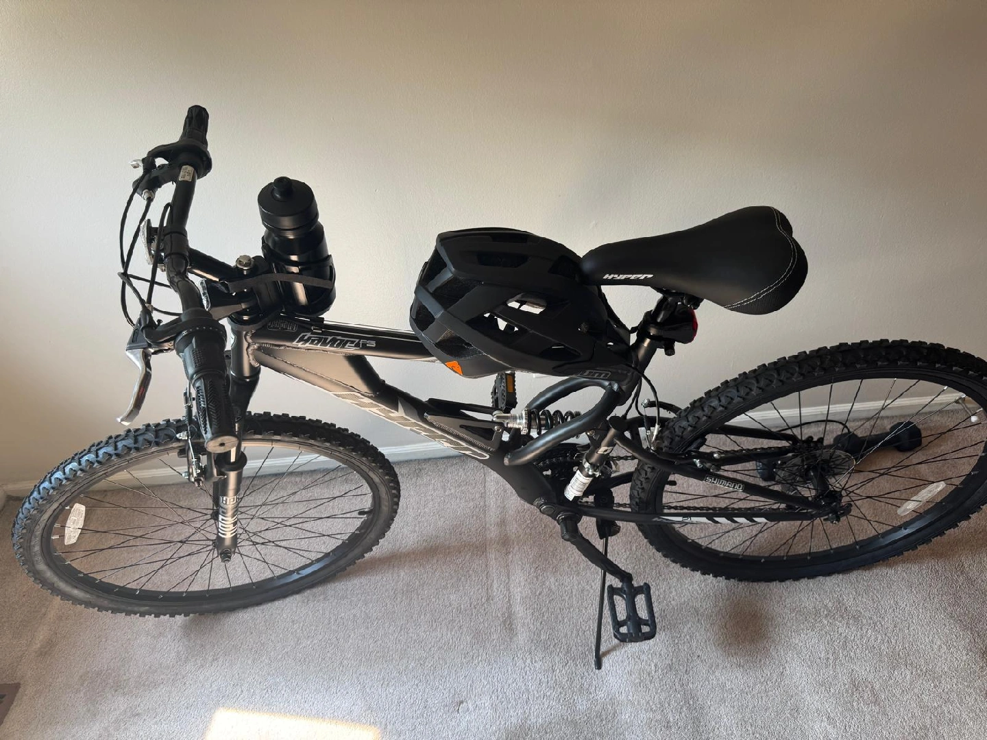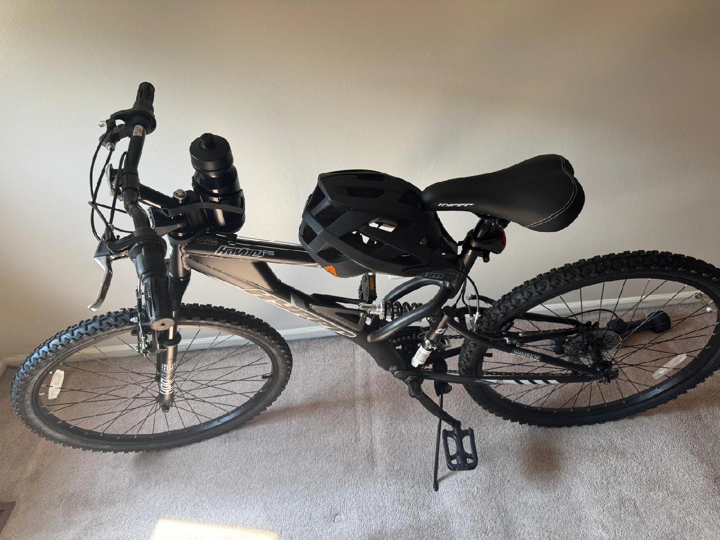65Selling a Hyper Havoc mountain bike! It's a full suspension bike, perfect for hitting the trails or just cruising around the neighborhood. The black color gives it a sleek look. Ready for a new owner to enjoy ¡Vendo una bicicleta de montaña Hyper Havoc! Es una bicicleta de suspensión completa, perfecta para recorrer los senderos o simplemente navegar por el vecindario. El color negro le da un aspecto elegante. ¡Listo para que un nuevo propietario lo disfrute! incluye casco.