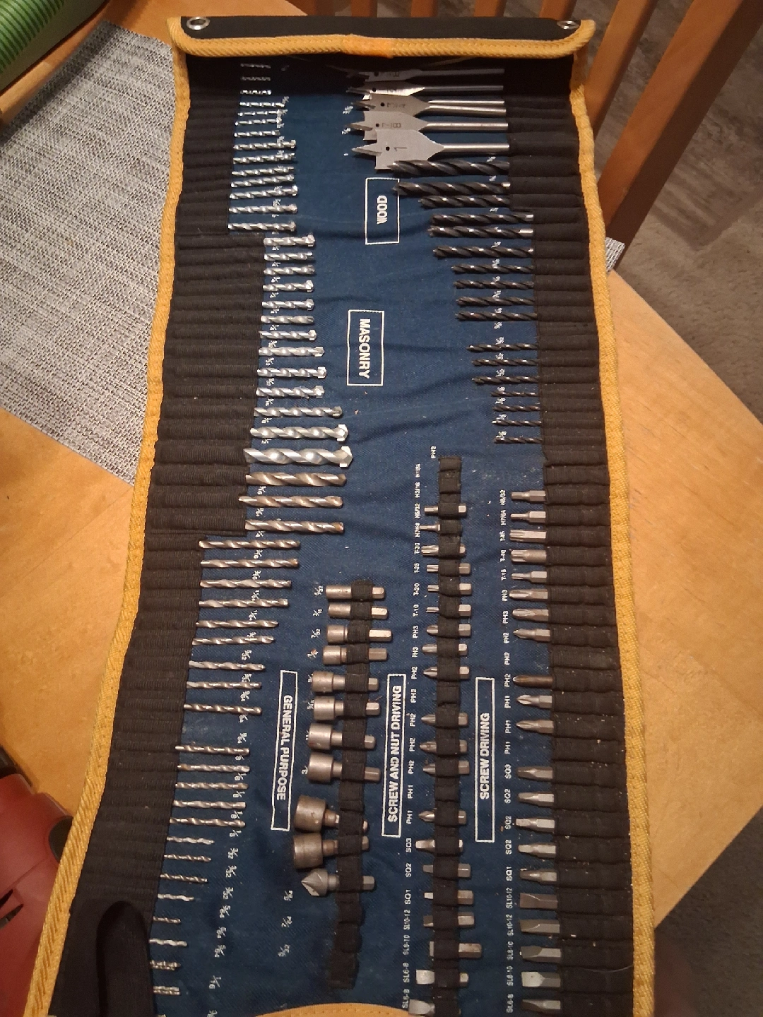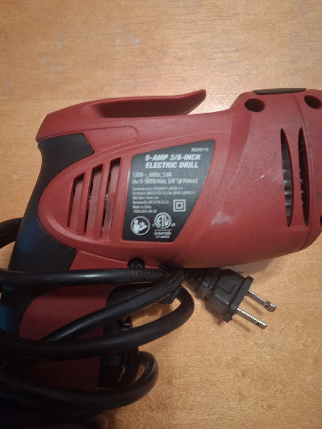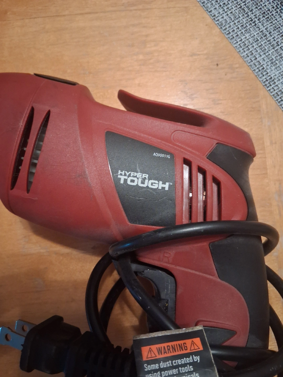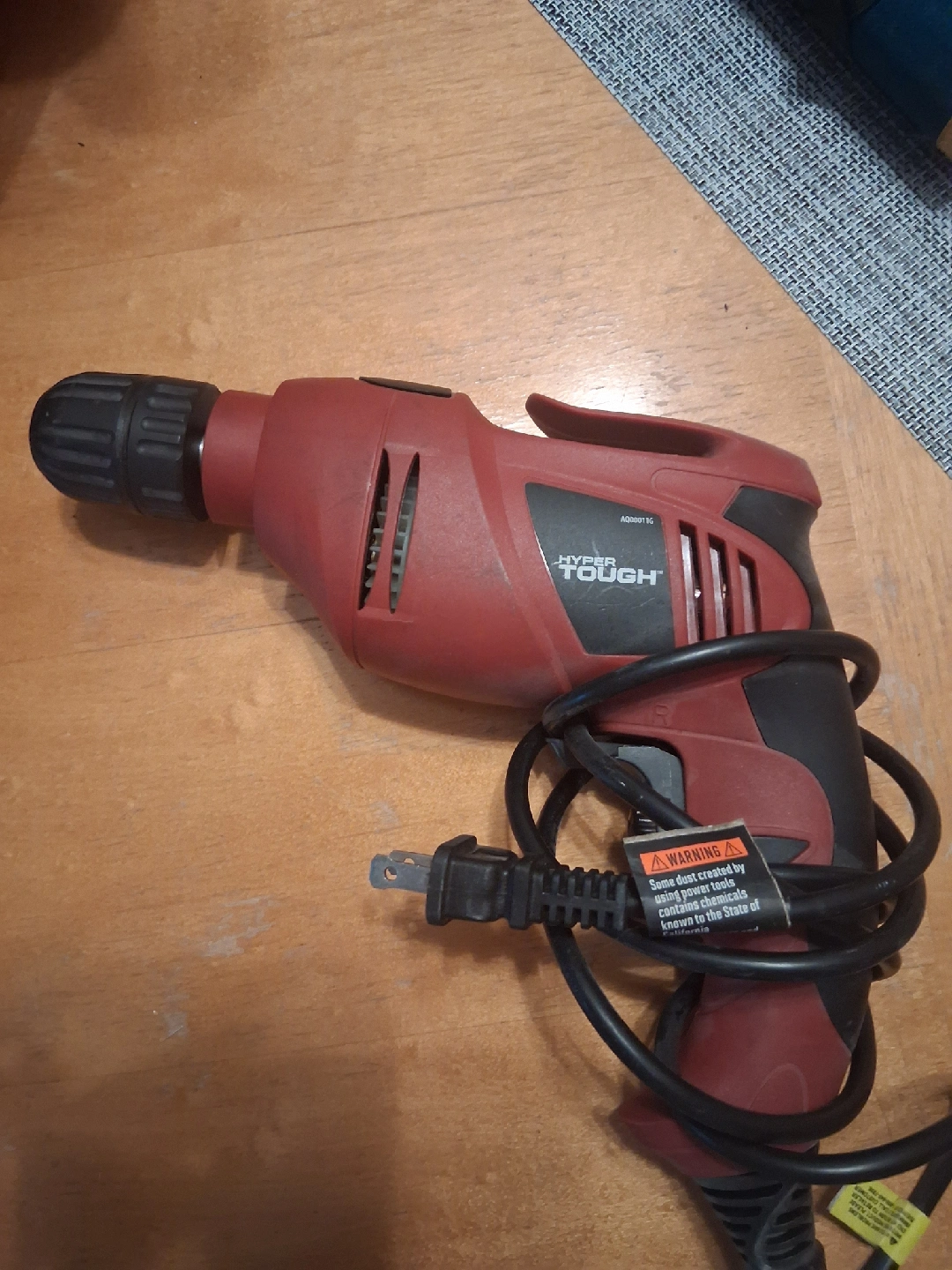 Selling a Hyper Tough 5-AMP 3/8-Inch Electric Drill! It shows some signs of use, but it still works great. It also comes with a Ryobi carrying case with drill bit set.